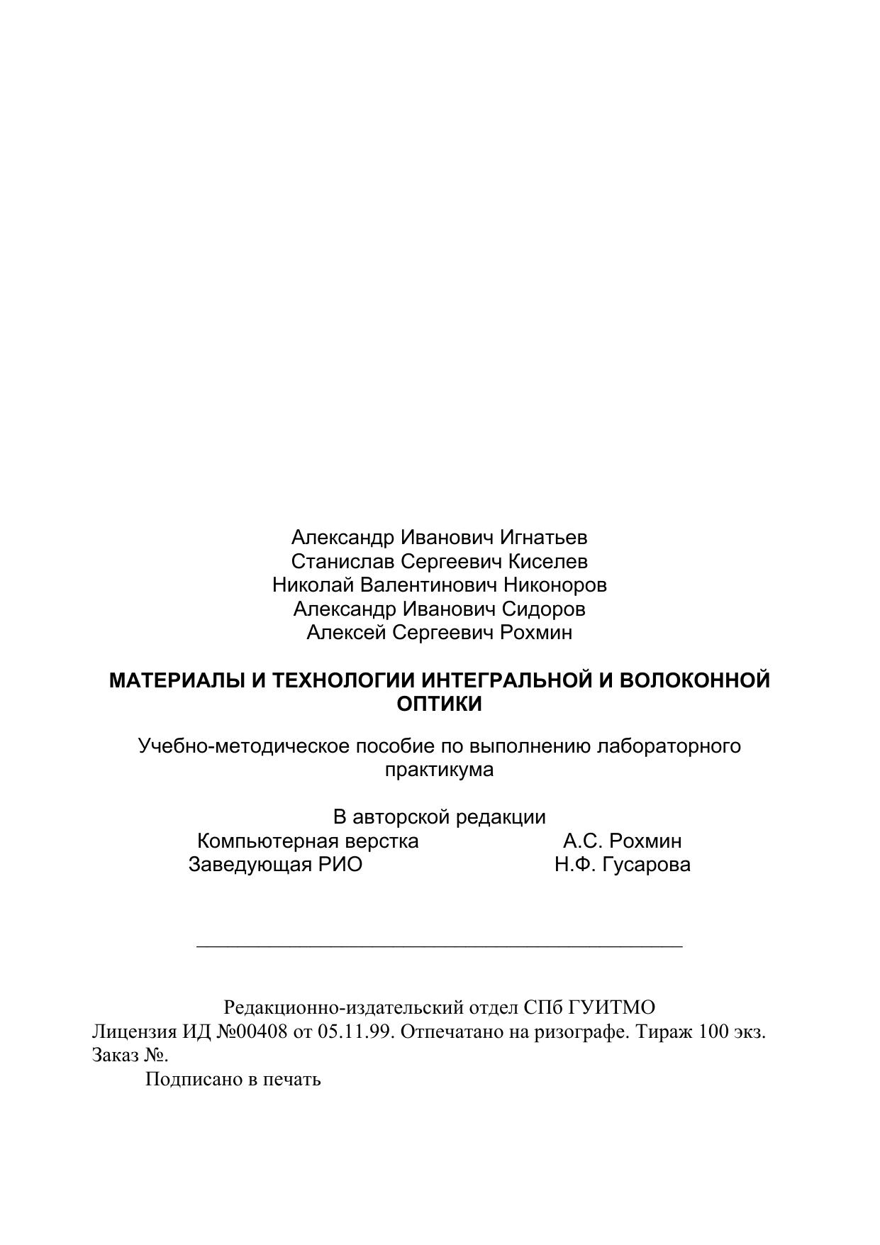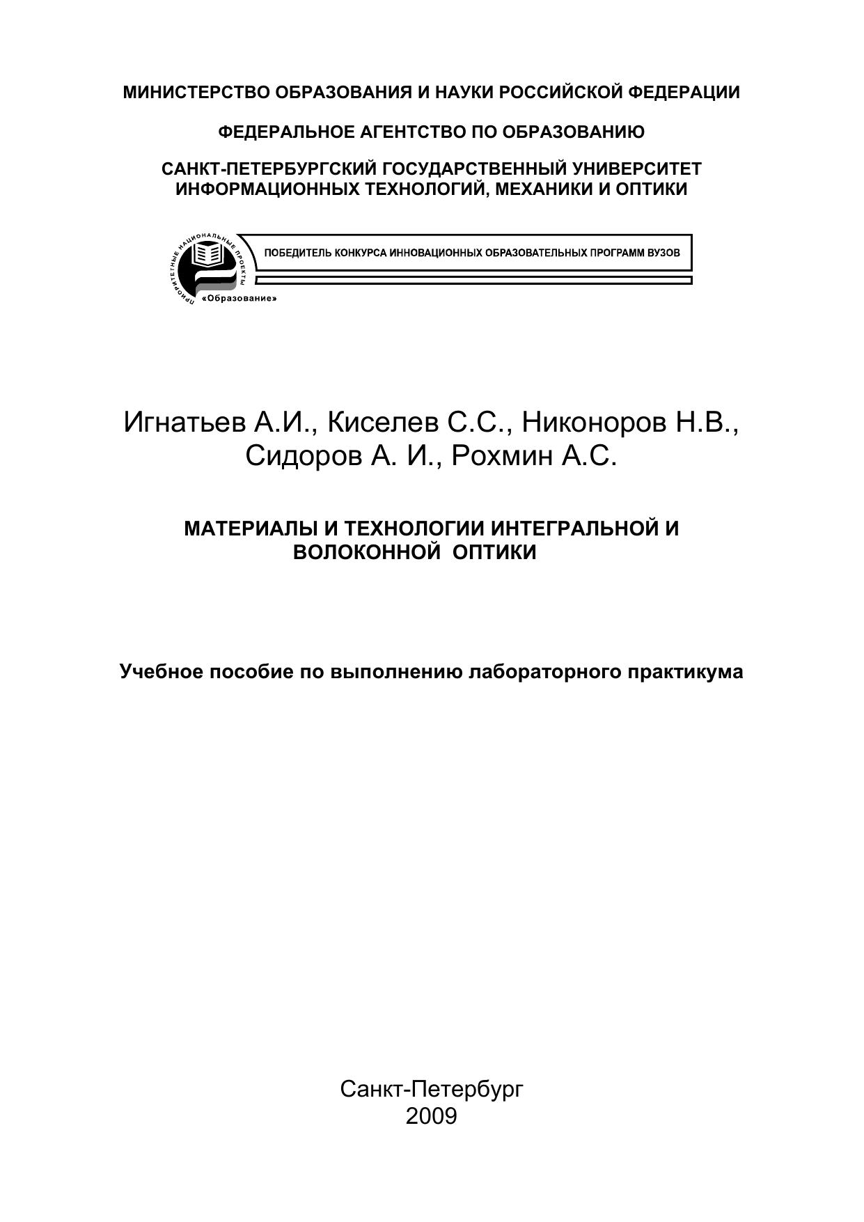 Описаны основные типы и свойства оптических волноводов, применяемых в интегральной оптике. Рассмотрены материалы и технологии, применяемые для изготовления оптических волноводов и устройств интегральной оптики. Приведеныпримеры интегрально-оптических устройств. Учебное пособие предназначено для студентов, обучающихся по направлению 200600 «Фотоника и оптоинформатика» при изучении дисциплин «Основы фотоники», «Волноводная фотоника», «Материалы и технологии волоконной и интегральной оптики», а также по направлению 200200 «Оптотехника» при изучении дисциплины «Материалы лазерной оптоэлектроники».