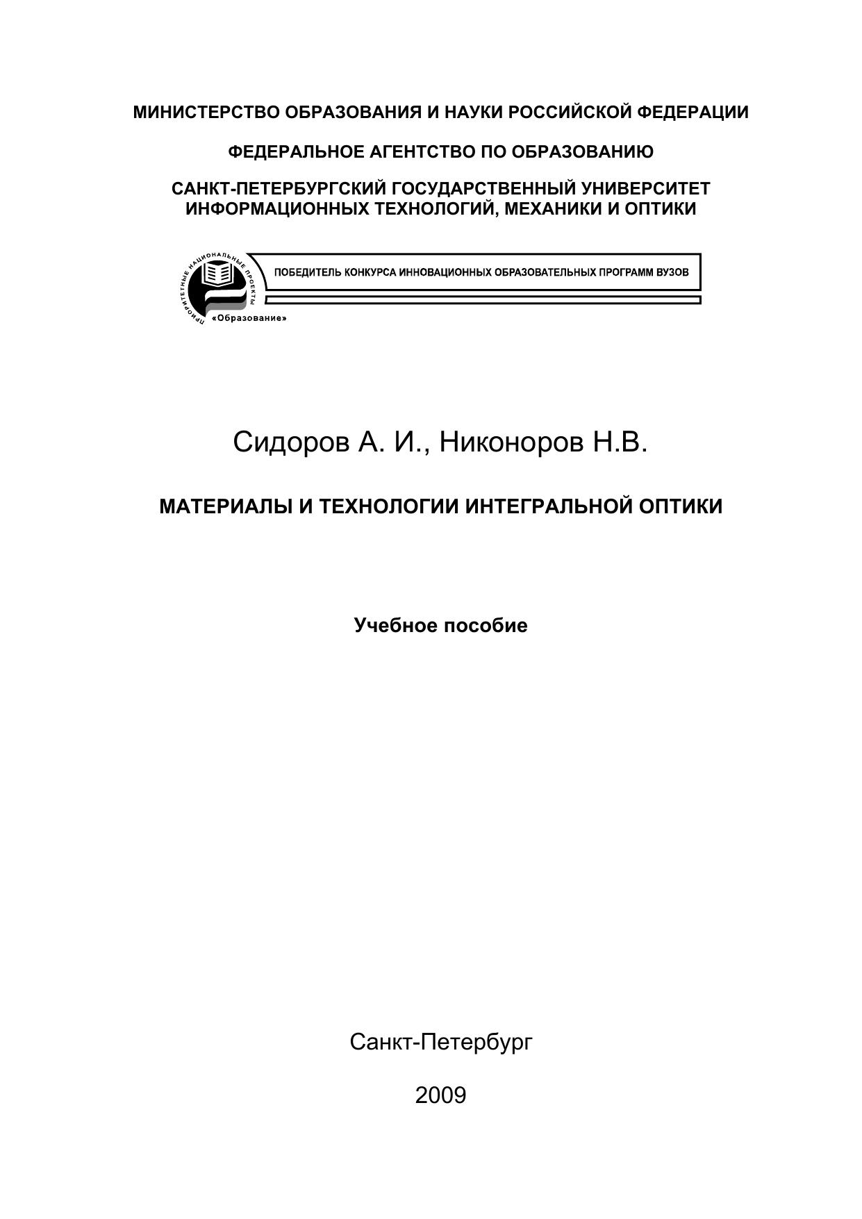 Материалы и технологии интегральнойоптики. Учебное пособие, курс лекций
