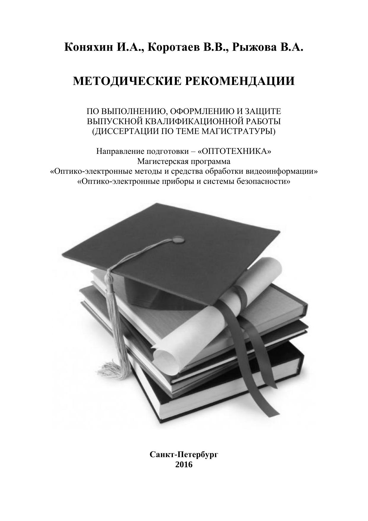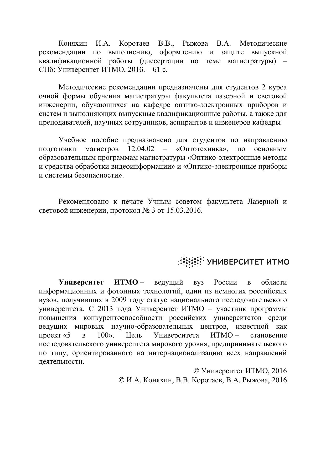 Методические рекомендации предназначены для студентов 2 курса очной формы обучения магистратуры факультета лазерной и световой инженерии, обучающихся на кафедре оптико-электронных приборов и систем и выполняющих выпускные квалификационные работы, а также для преподавателей, научных сотрудников, аспирантов и инженеров кафедры