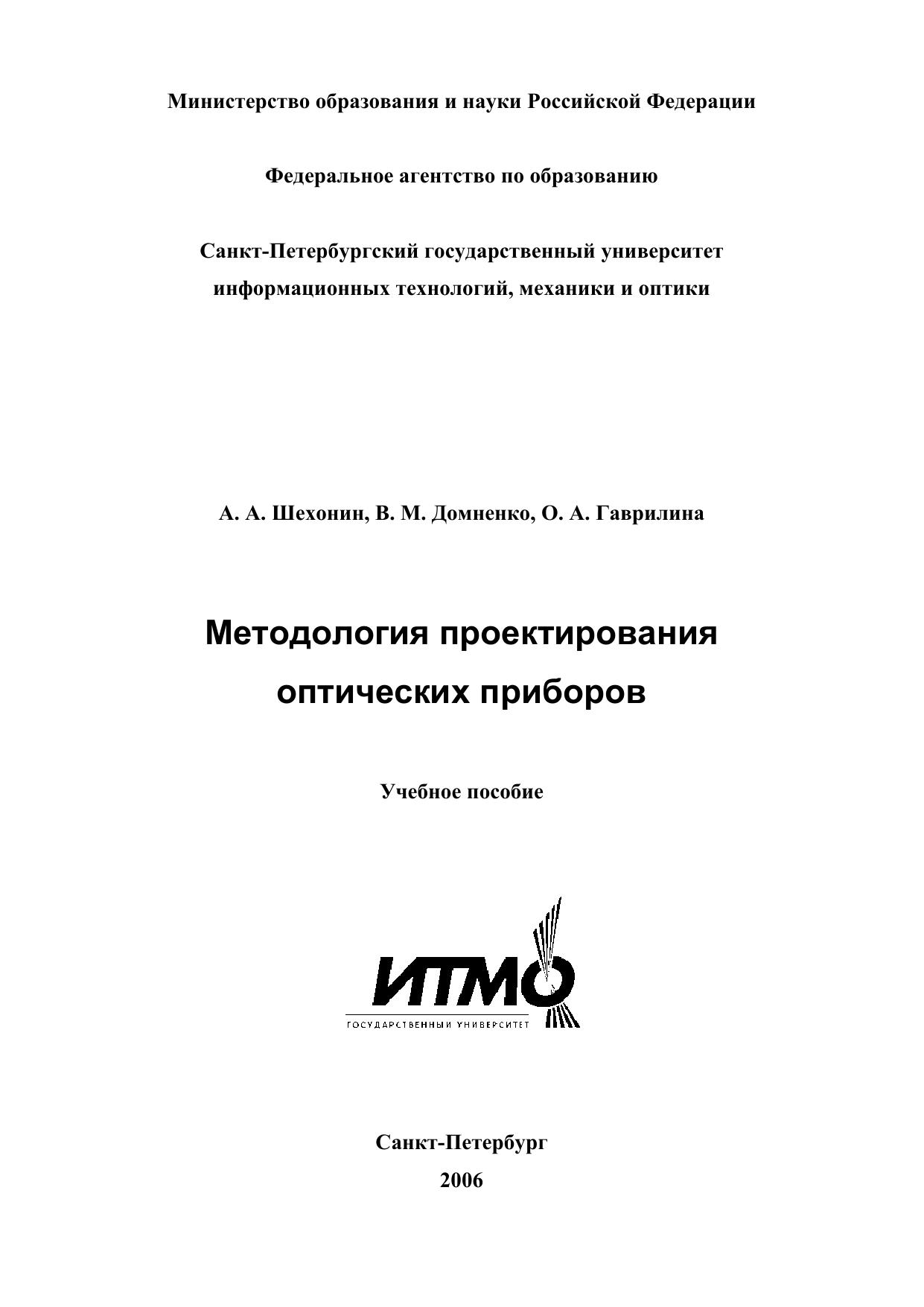 Методология проектирования оптических приборов