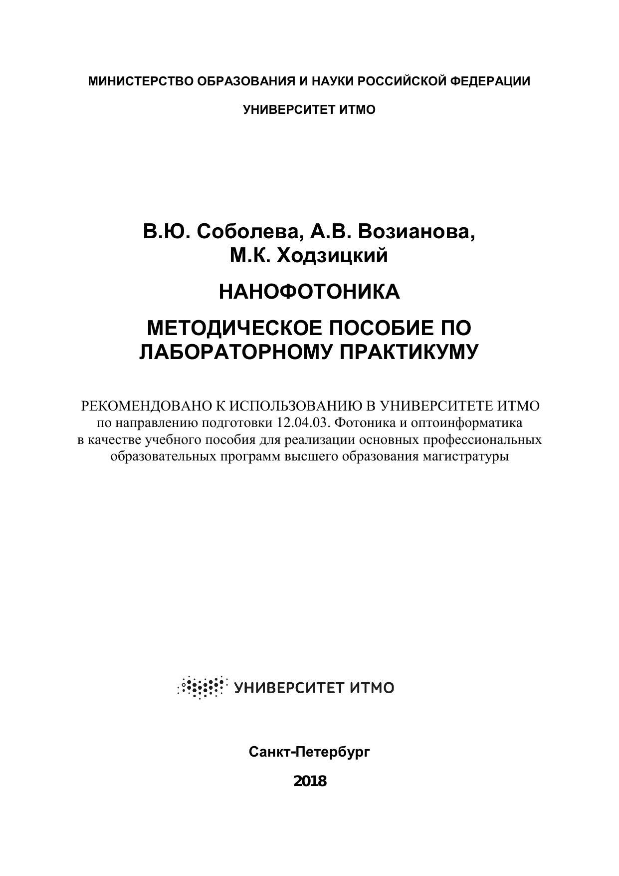 Нанофотоника. Методическое пособие по лабораторному практикуму