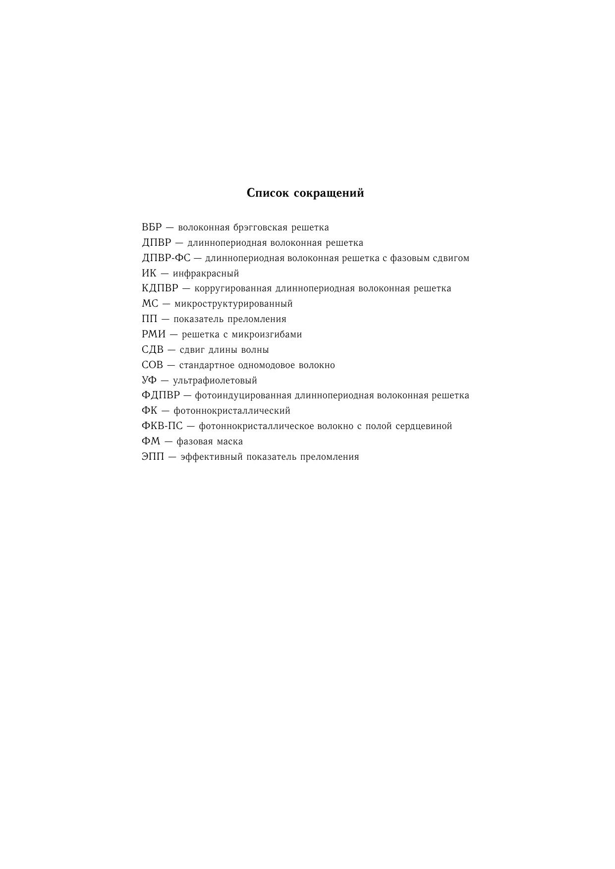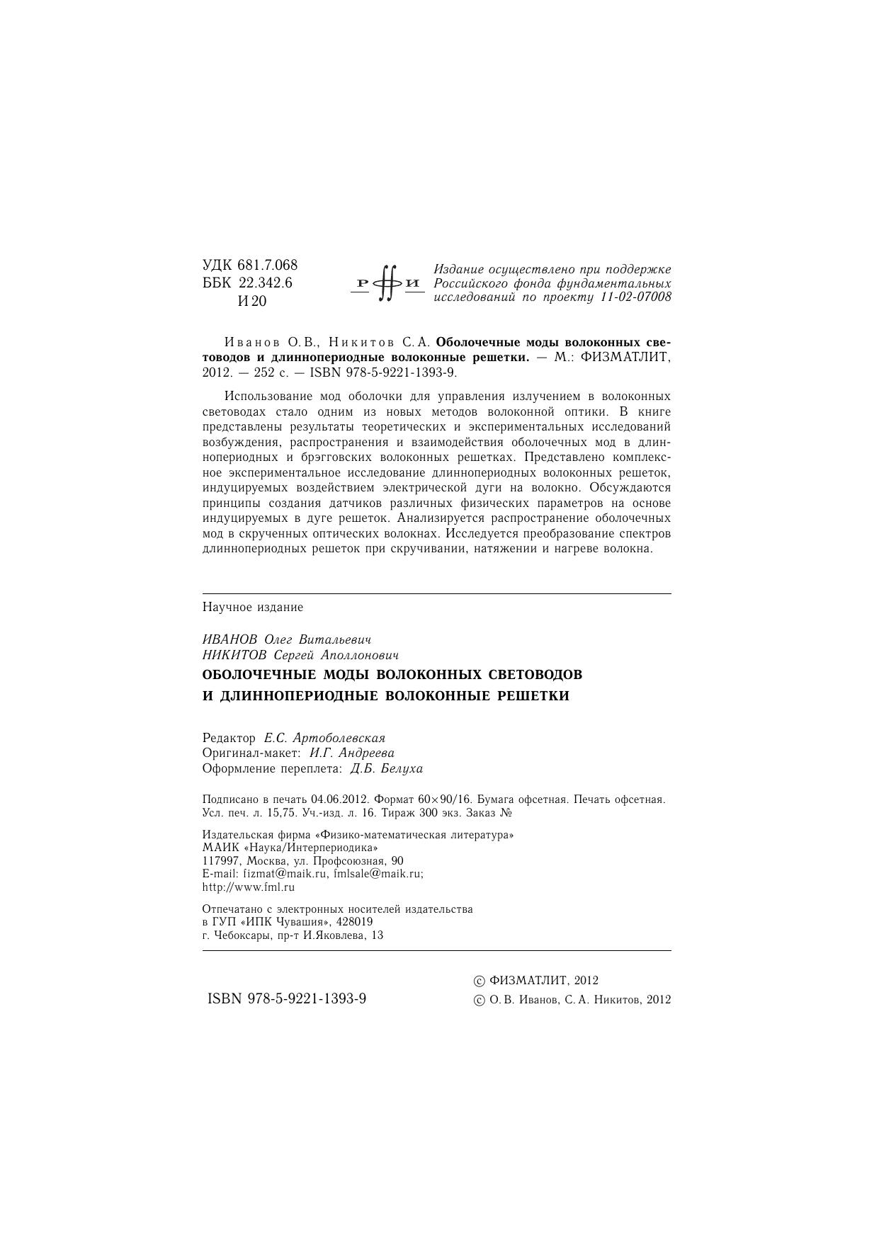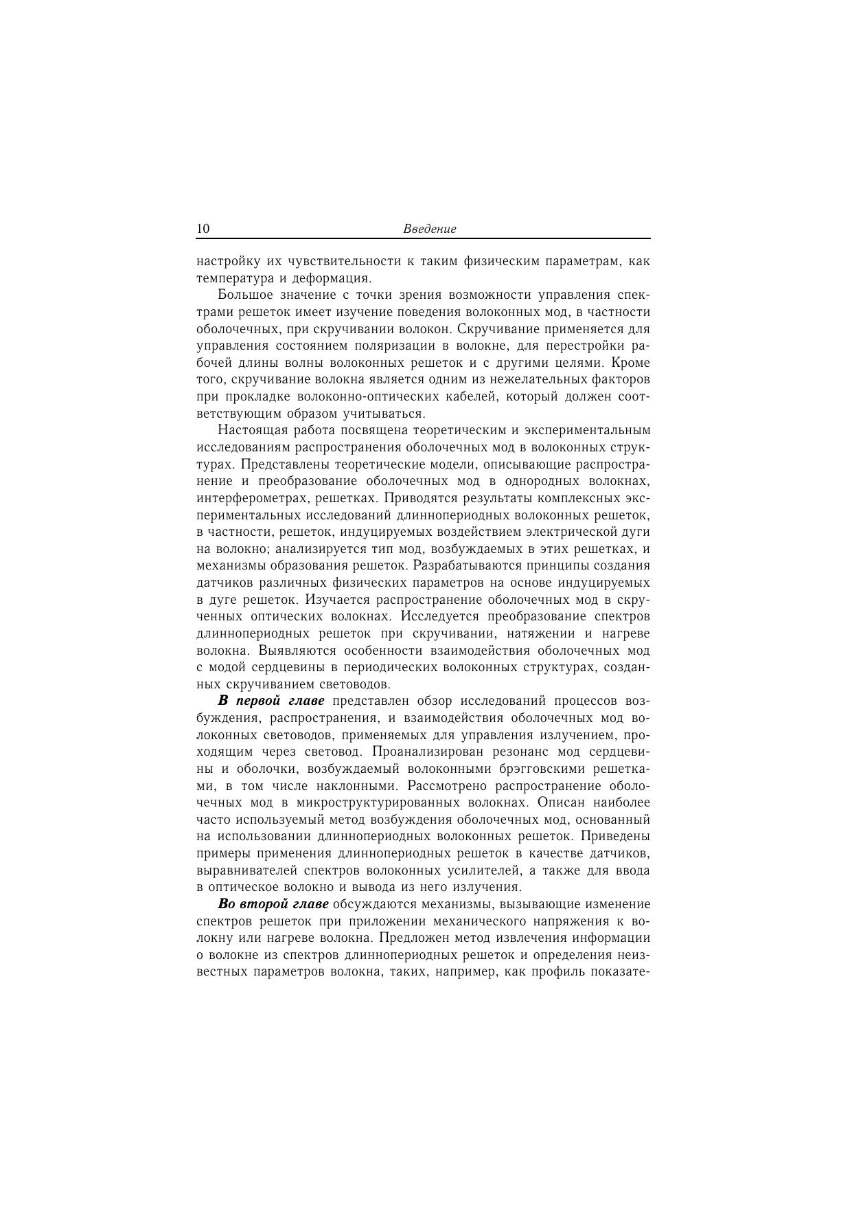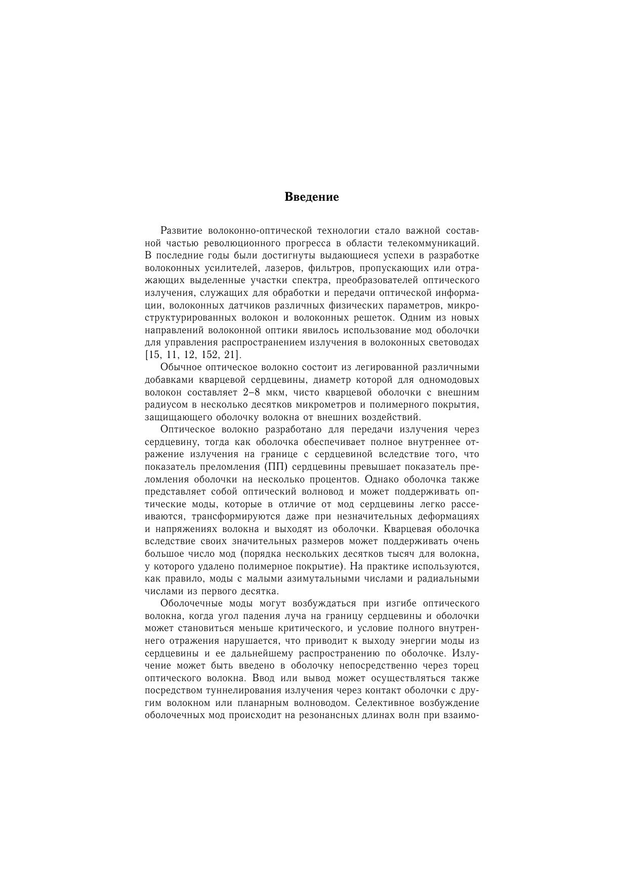 Использование мод оболочки для управления излучением в волоконных световодах стало одним из новых методов волоконной оптики. В книге представлены результаты теоретических и экспериментальных исследований возбуждения, распространения и взаимодействия оболочечных мод в длиннопериодных и брэгговских волоконных решетках. Представлено комплексное экспериментальное исследование длиннопериодных волоконных решеток, индуцируемых воздействием электрической дуги на волокно. Обсуждаются принципы создания датчиков различных физических параметров на основе индуцируемых в дуге решеток. Анализируется распространение оболочечных мод в скрученных оптических волокнах. Исследуется преобразование спектров длиннопериодных решеток при скручивании, натяжении и нагреве волокна.