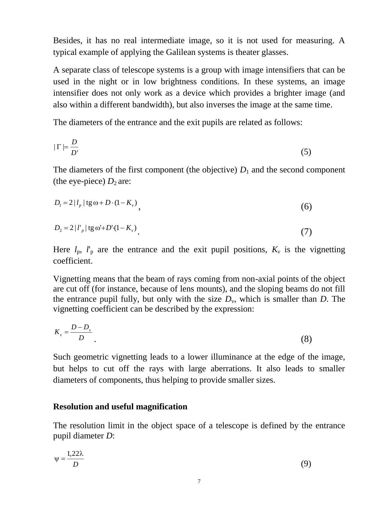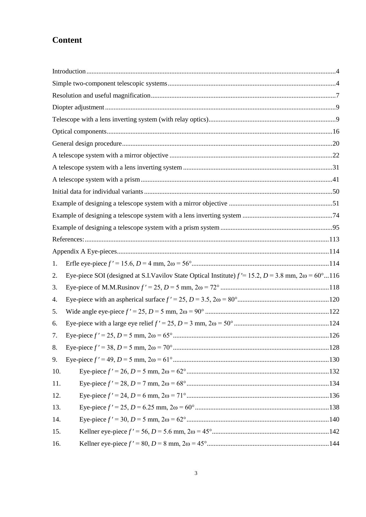 The guide contains some basic concepts regarding the optical schemes of telescope (afocal) systems for visual observation. Systems design and methods as well as some specific features of objectives, eye-pieces and inverting systems are discussed.