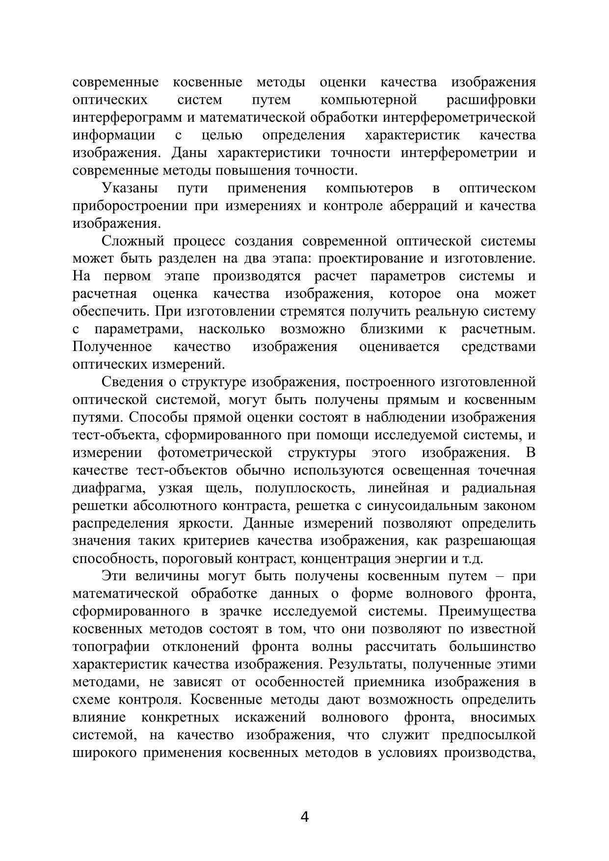 Цель пособия – ознакомить студентов с теоретическими основами и методами оптических измерений как с позиций оптика-конструктора и исследователя, так и с общеметрологических позиций, связанных с задачами и спецификой классических и современных оптических измерений в современных условиях производства и научно-технических исследований. Рассмотрены анализ и синтез схемных решений аппаратуры для измерения деформаций волнового фронта, связанных с аберрациями оптических систем и ошибками оптических поверхностей, а также современные косвенные методы оценки качества изображения оптических систем путем компьютерной расшифровки интерферограмм.