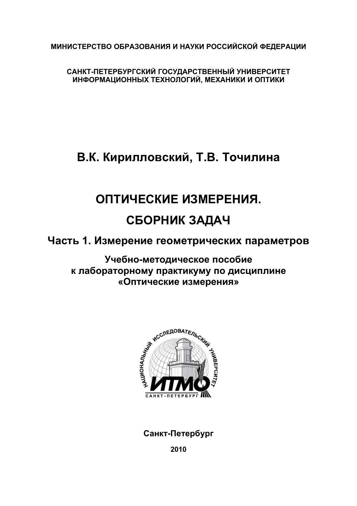 Оптические измерения. Сборник задач. Часть 1. Измерение геометрических параметров. Учебно-методическое пособие к лабораторному практикуму по дисциплине «Оптические измерения»