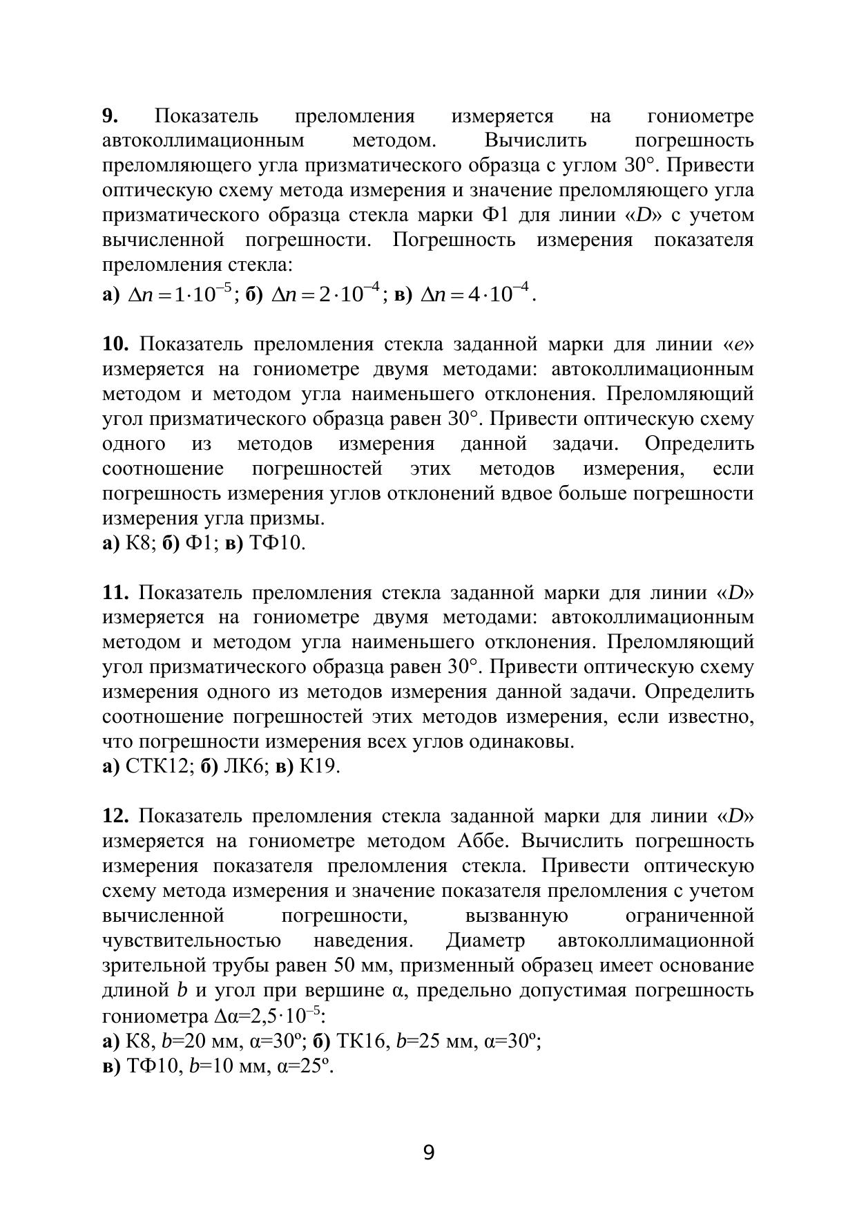 В пособии представлены задачи, решение которых позволит закрепить знания, полученные при изучении дисциплины «Оптические измерения», глубже понять физический смысл лабораторного практикума и грамотно оценить точность выполненных измерений. Формулировке задач предшествует краткое изложение соответствующего раздела оптических измерений и необходимые соотношения для выполнения численных расчетов при решении задач.