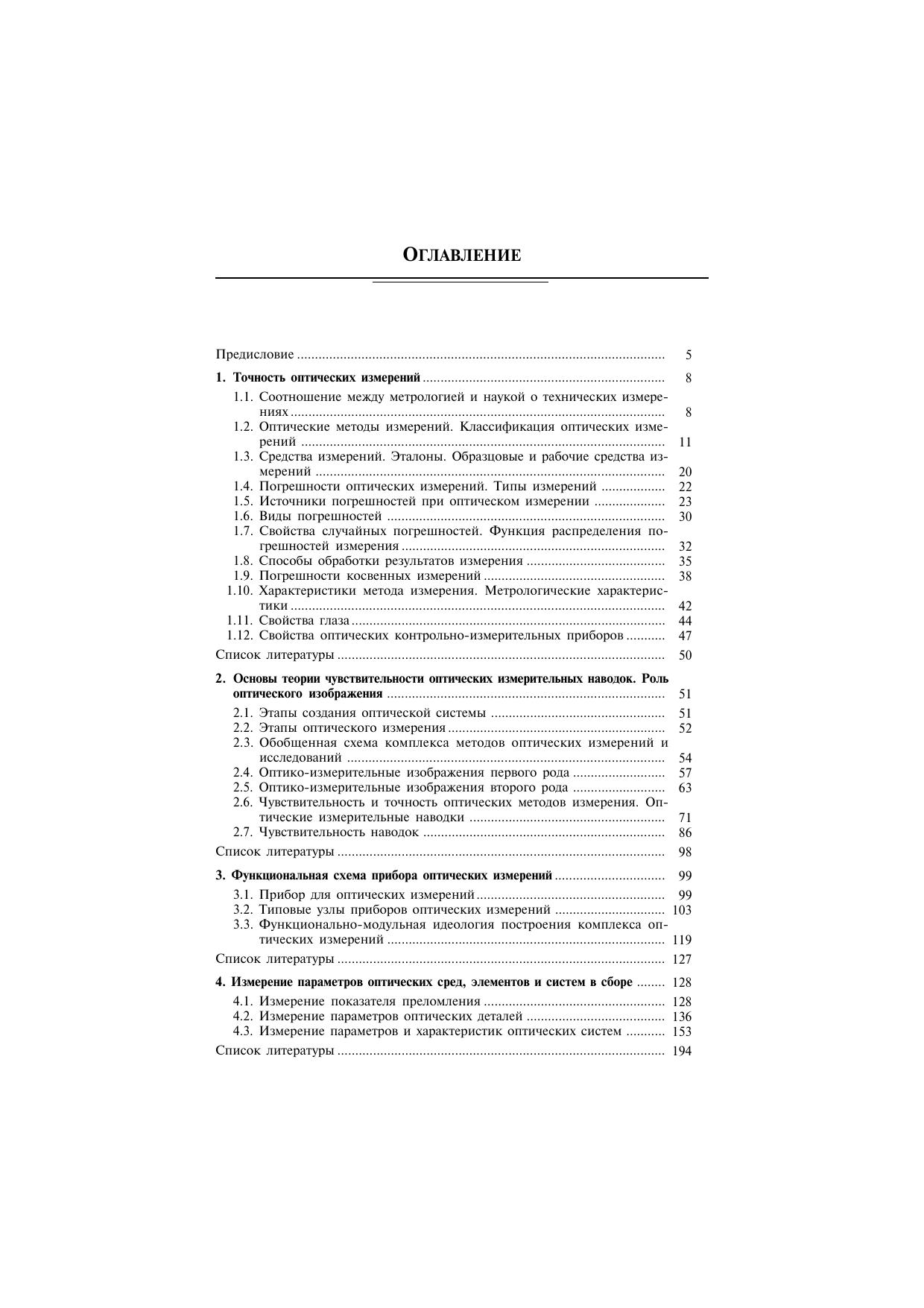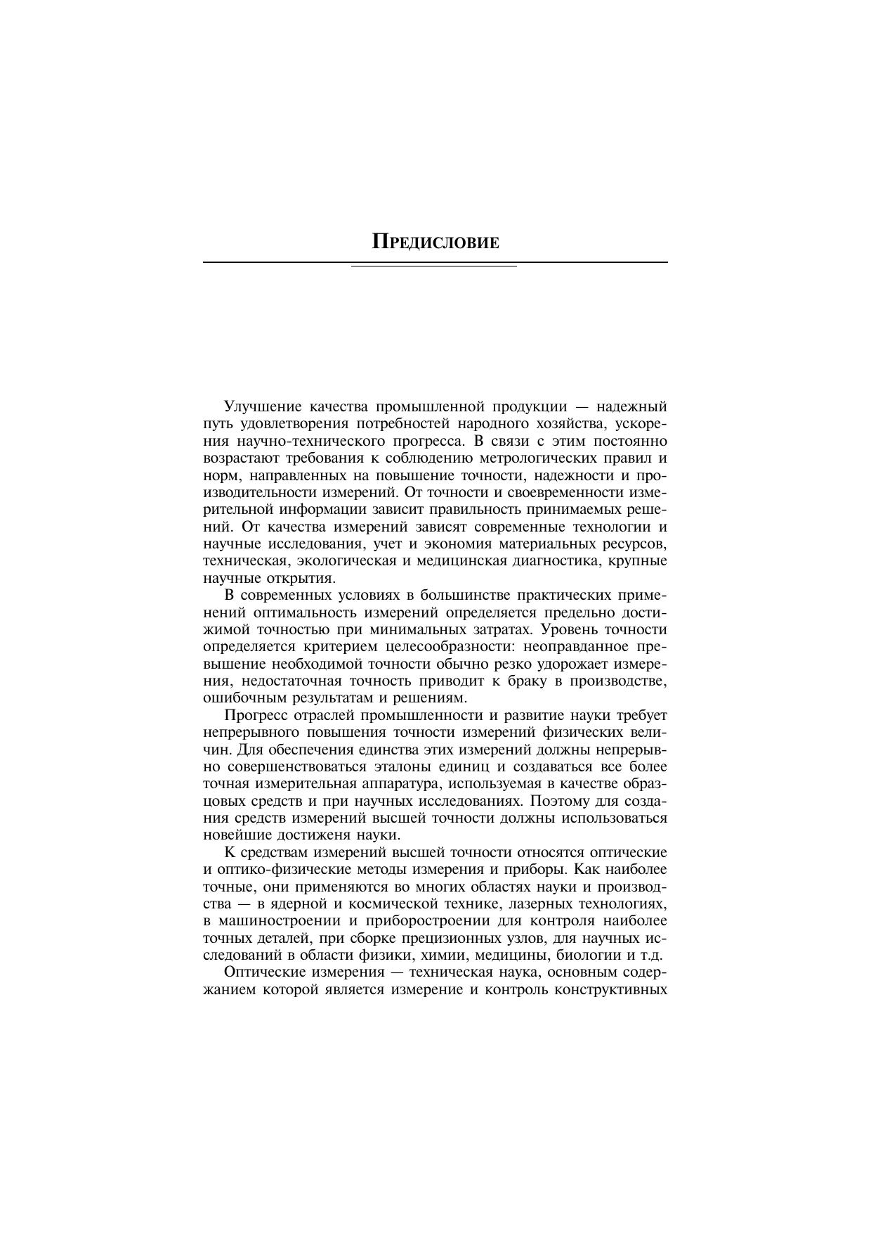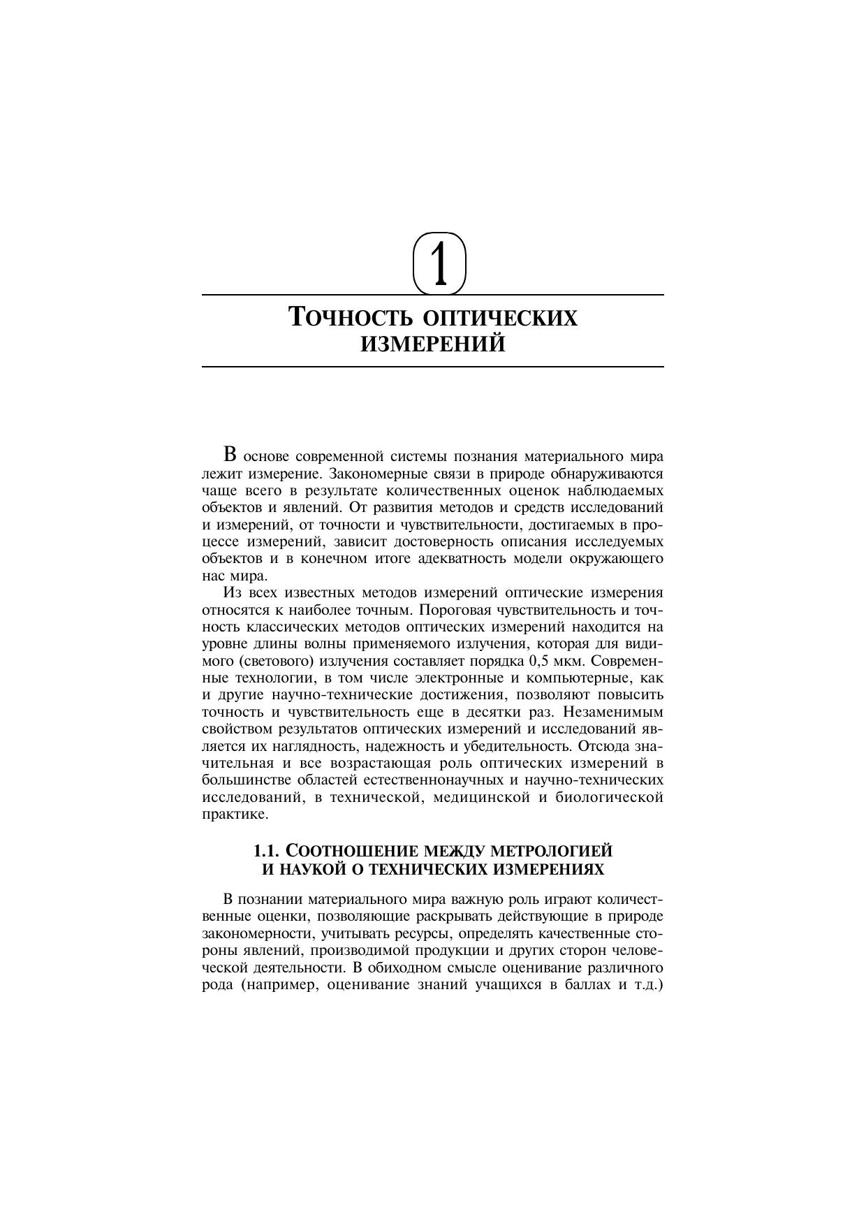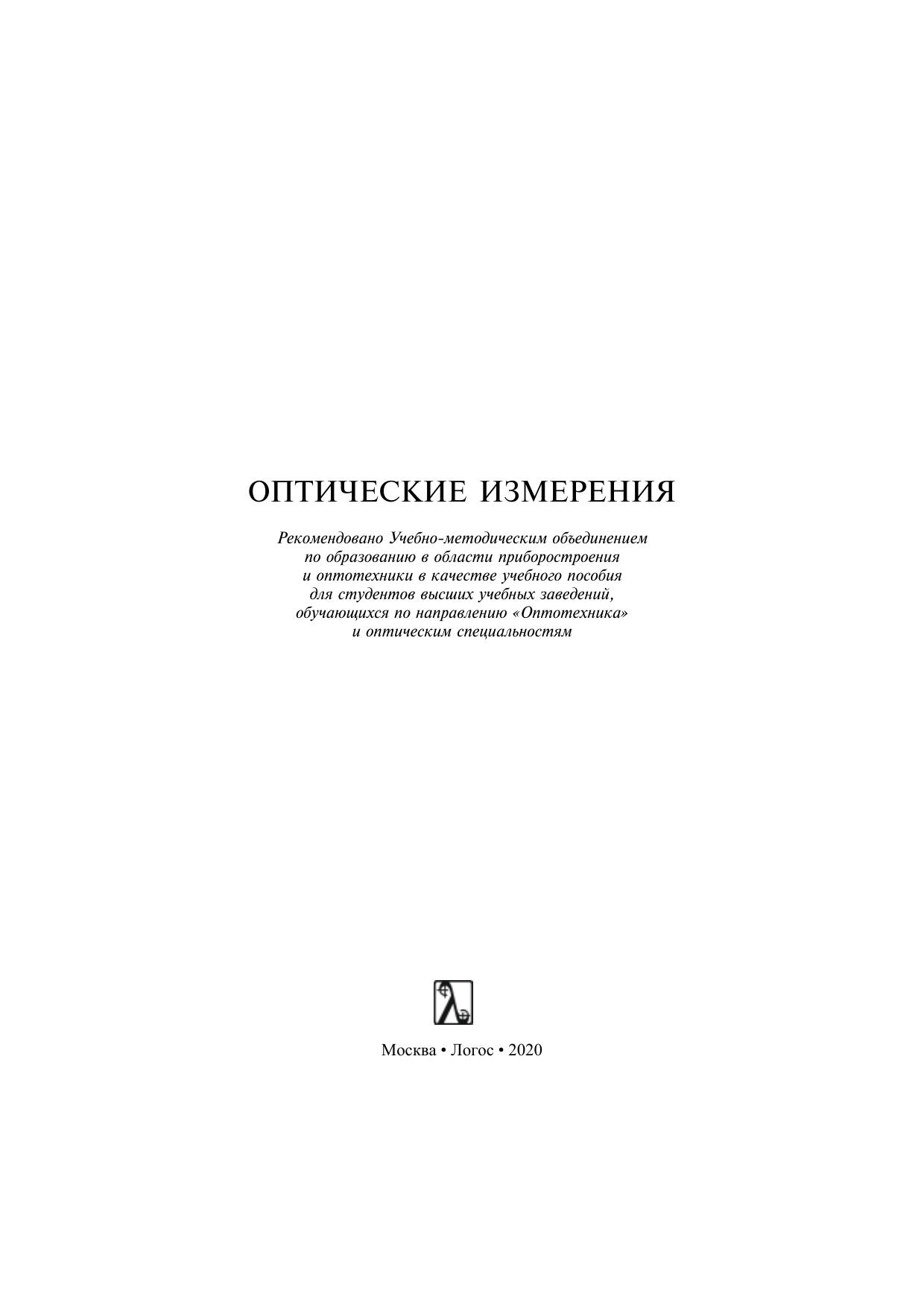 Описываются методы и средства оптических измерений, теория точности оптических измерений, способы определения порогов чувствительности и характеристик точности методов и аппаратуры. На основе этих знаний вырабатывается умение анализировать существующие функциональные схемы оптических контрольно-измерительных устройств, определять требования к их оптическим и метрологическим характеристикам, создавать схемы и методики оптических измерений согласно возникающим задачам. Учебное пособие написано в соответствии с программой учебной дисциплины «Оптические измерения». Для студентов высших учебных заведений, обучающихся по направлению «Оптотехника» и оптическим специальностям подготовки бакалавров и магистров.