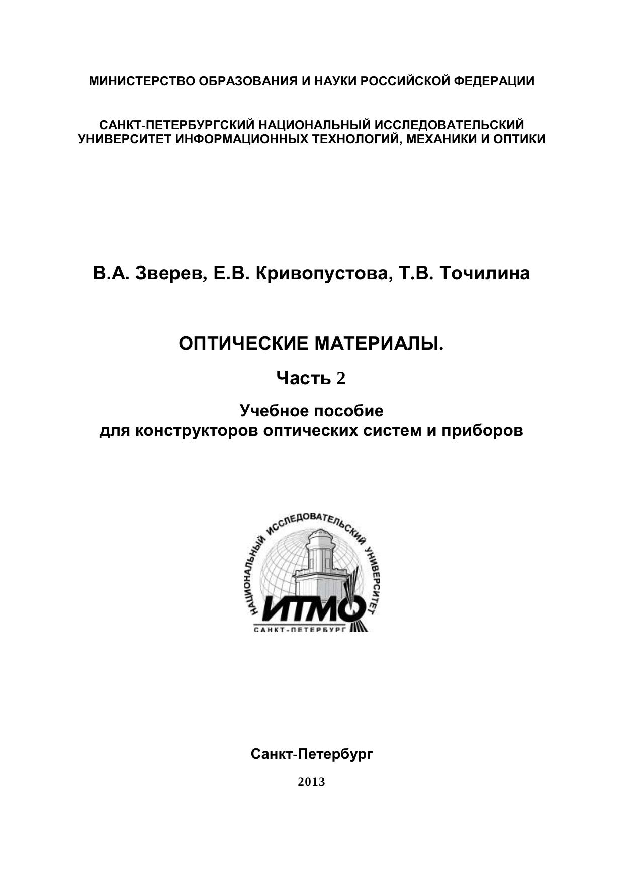 Оптические материалы. Часть 2. Учебное пособие для конструкторов оптических систем и приборов