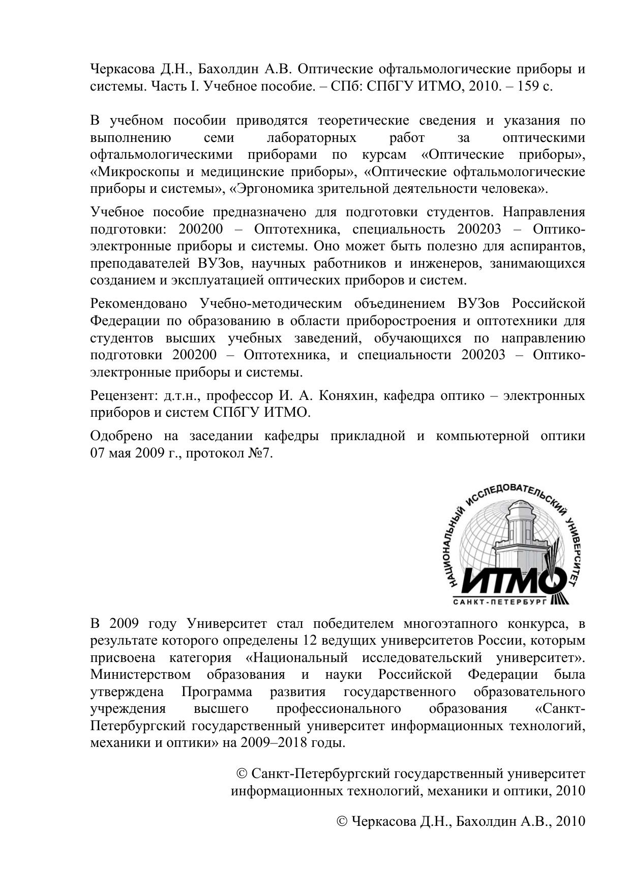 Гриф: Рекомендовано Учебно-методическим объединением ВУЗов Российской Федерации по образованию в области приборостроения и оптотехники для студентов высших учебных заведений, обучающихся по направлению подготовки 200200 – Оптотехника, и специальности 200203 – Оптико- электронные приборы и системы.