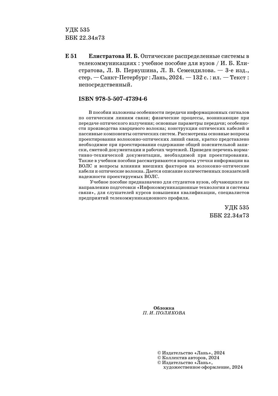 В пособии изложены особенности передачи информационных сигналов по оптическим линиям связи, физические процессы, возникающие при передаче оптического излучения, основные параметры передачи, особенности производства кварцевого волокна, конструкция оптических кабелей и пассивные компоненты оптических систем. Рассмотрены основные вопросы проектирования волоконно-оптических линий связи, кратко представлено необходимое при проектировании содержание общей пояснительной записки, сметной документации и рабочих чертежей. Приведен перечень нормативно-технической документации, необходимой при проектировании. Также в учебном пособии рассматриваются вопросы утечки информации на ВОЛС и вопросы влияния внешних факторов на волоконно-оптические кабели и оптические волокна. Дается описание количественных показателей надежности проектируемых ВОЛС. Учебное пособие предназначено для студентов, обучающихся по направлению подготовки «Инфокоммуникационные технологии и системы связи», для слушателей курсов повышения квалификации, специалистов предприятий телекоммуникационного профиля.