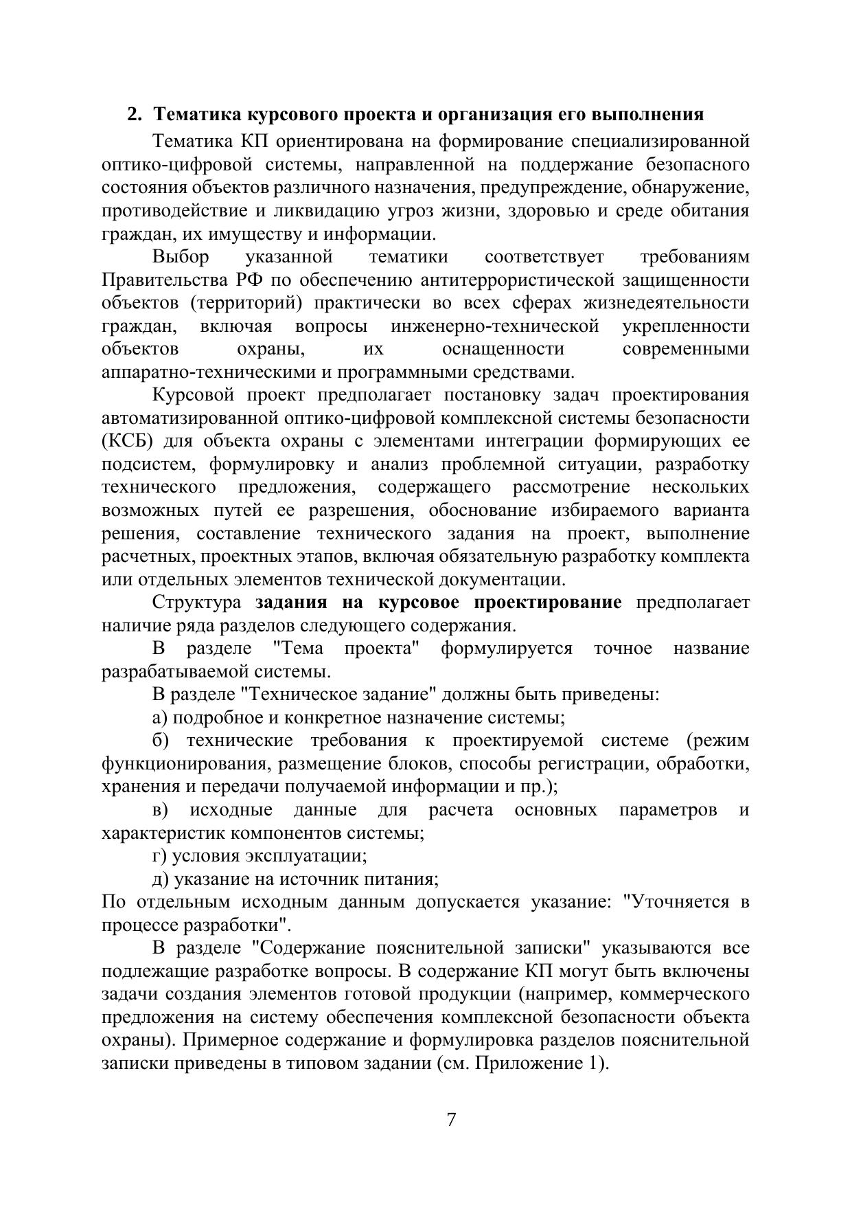 Учебное пособие предназначено для студентов по направлению подготовки магистратуры 12.04.02 «Оптотехника». Представлены тематика курсового проектирования, содержание и методика выполнения курсового проекта, список стандартов и руководящих документов для выполнения работ по формированию пояснительной записки и графических материалов по проектированию оптико-цифровых систем для обеспечения комплексной безопасности объектов. Методика выполнения курсовых проектов разработана с использованием учебной и специальной научно-технической литературы по проектированию комплексных автоматизированных систем безопасности, а также типовых методических материалов по курсовому проектированию.
