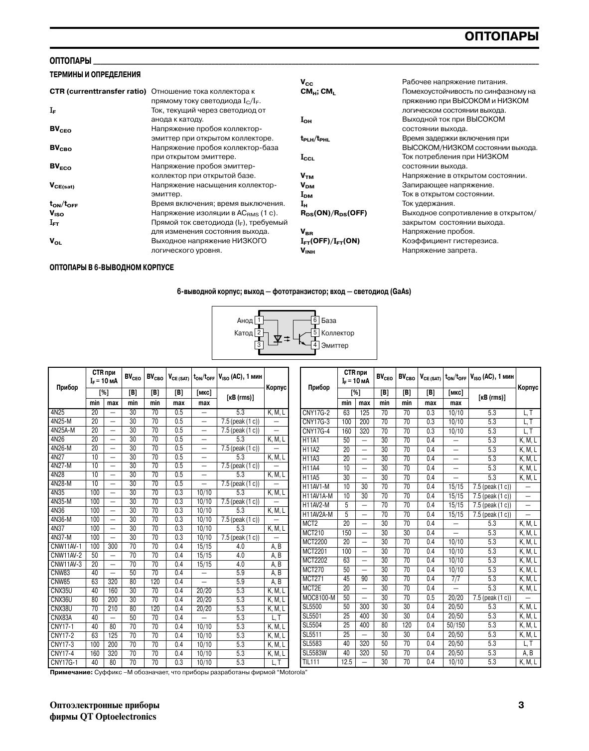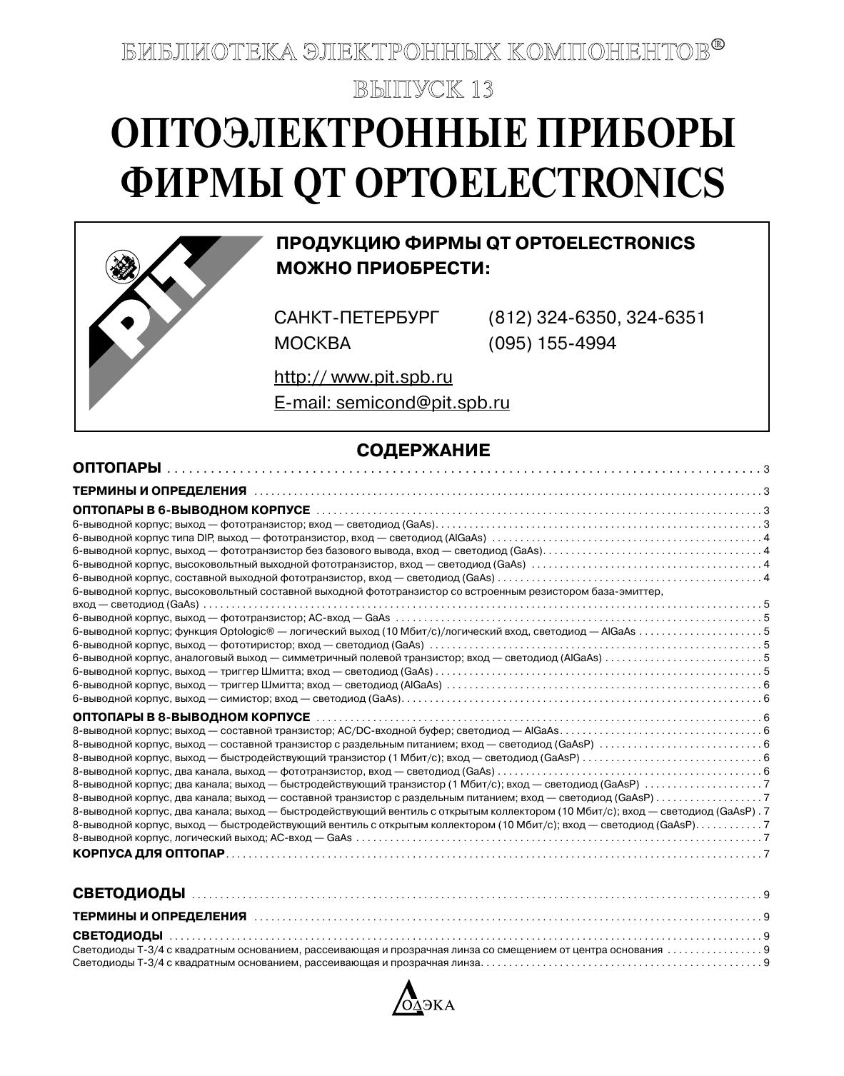 Оптоэлектронные приборы фирмы QT Optoelectronics