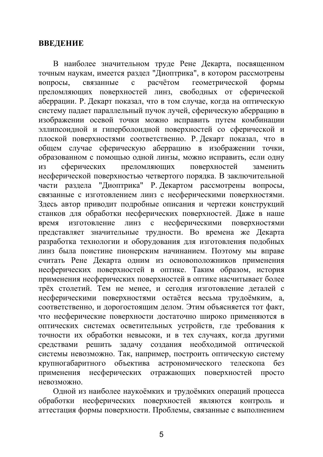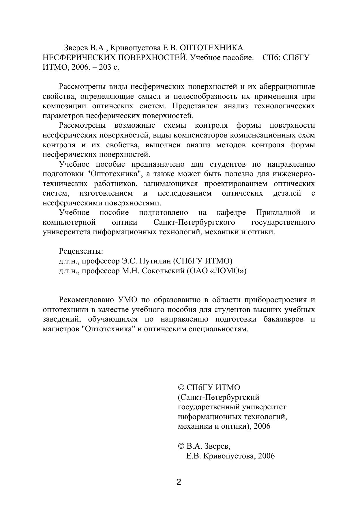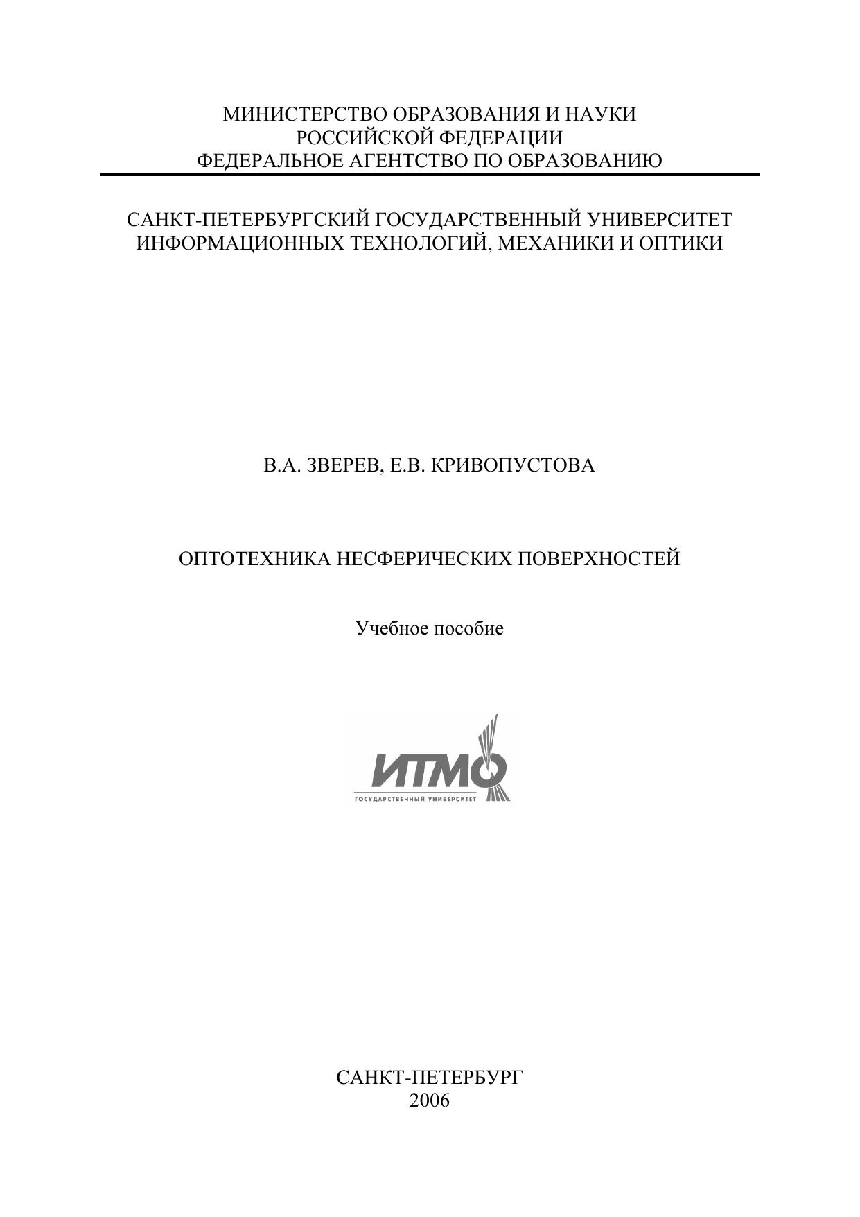 Рассмотрены виды несферических поверхностей и их аберрационные свойства, определяющие смысл и целесообразность их применения при композиции оптических систем. Представлен анализ технологических параметров несферических поверхностей. Рассмотрены возможные схемы контроля формы поверхности несферических поверхностей, виды компенсаторов компенсационных схем контроля и их свойства, выполнен анализ методов контроля формы несферических поверхностей. Учебное пособие предназначено для студентов по направлению подготовки "Оптотехника", а также может быть полезно для инженерно-технических работников, занимающихся проектированием оптических систем, изготовлением и исследованием оптических деталей с несферическими поверхностями. Учебное пособие подготовлено на кафедре Прикладной и компьютерной оптики Санкт-Петербургского государственного университета информационных технологий, механики и оптики.