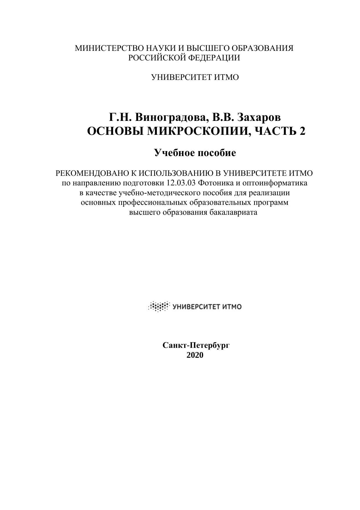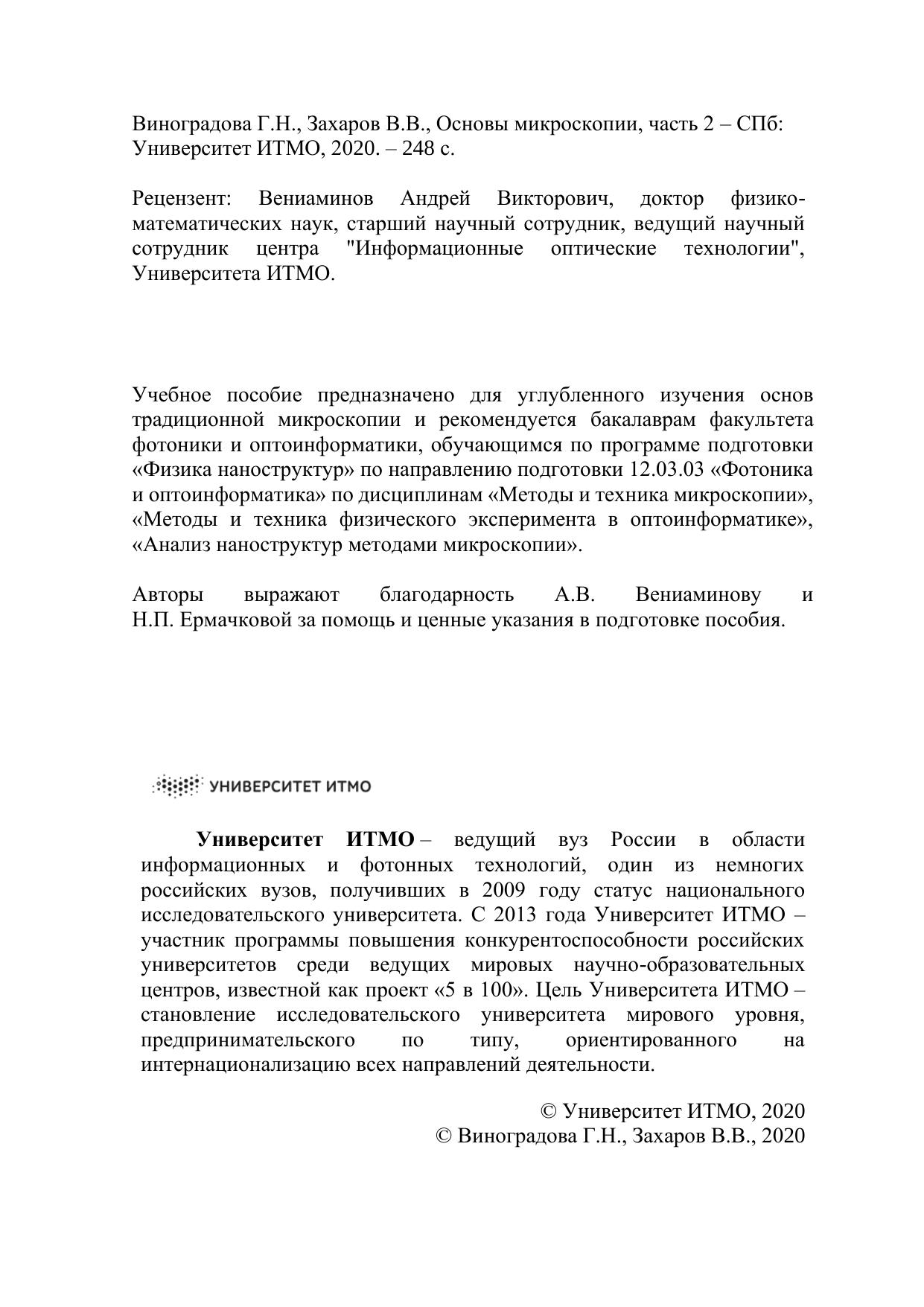 Учебное пособие предназначено для углубленного изучения основ традиционной микроскопии и рекомендуется бакалаврам факультета фотоники и оптоинформатики, обучающимся по программе подготовки «Физика наноструктур» по направлению подготовки 12.03.03 «Фотоника и оптоинформатика» по дисциплинам «Методы и техника микроскопии», «Методы и техника физического эксперимента в оптоинформатике», «Анализ наноструктур методами микроскопии».