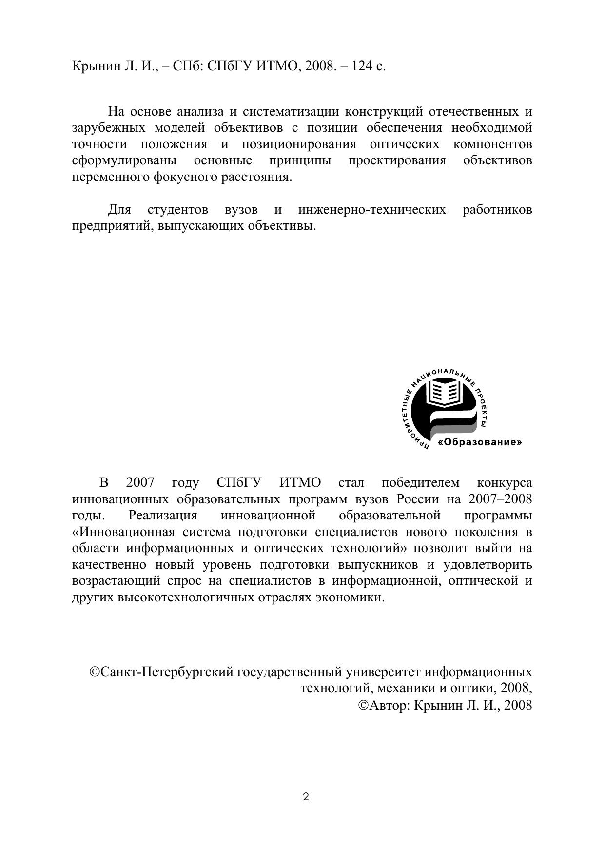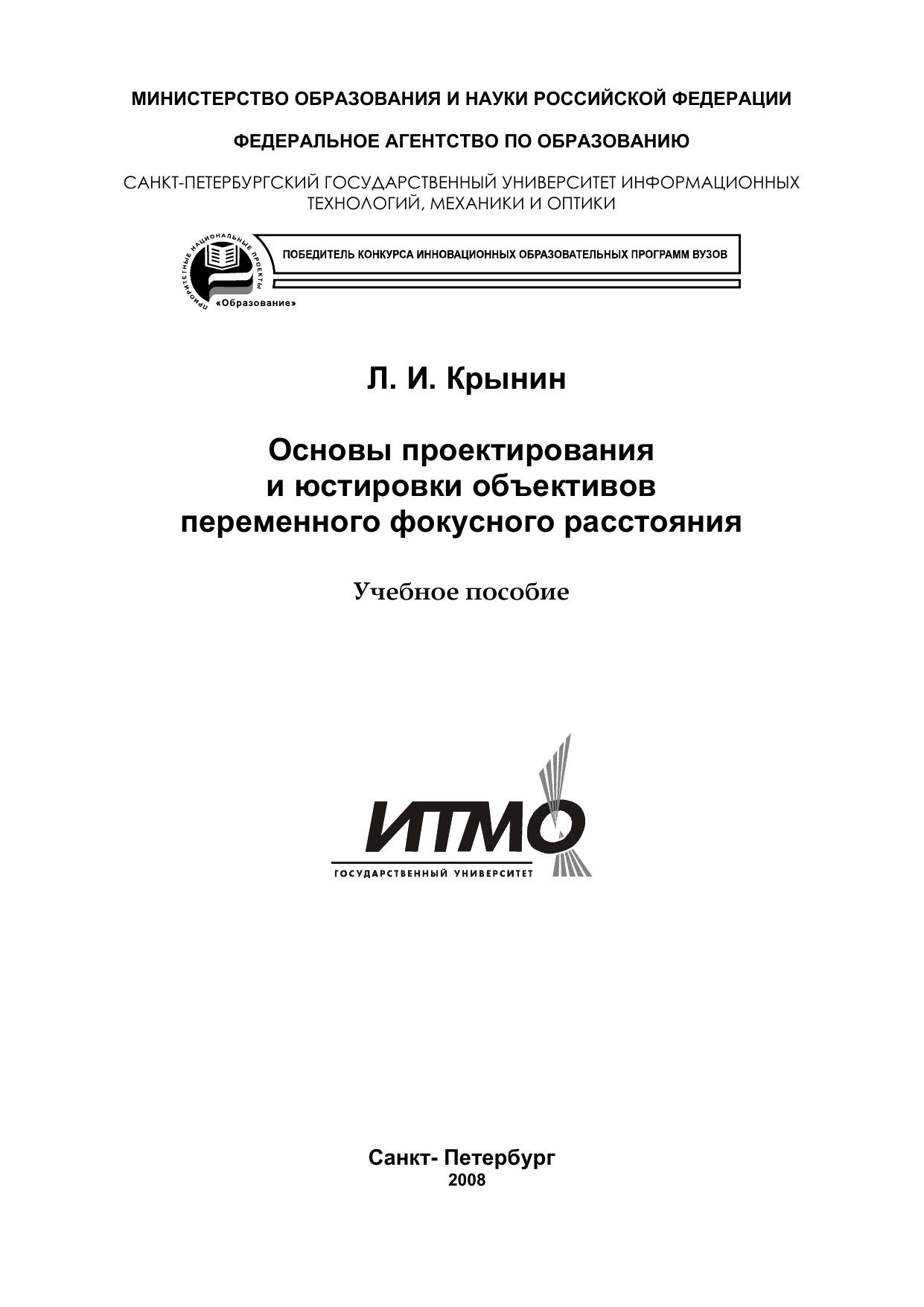 Основы проектирования и юстировки объективов переменного фокусного расстояния