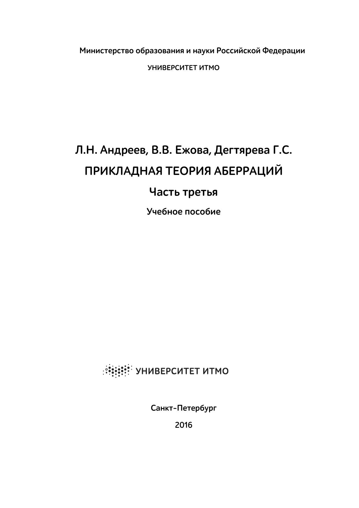 Прикладная теория аберраций. Часть третья.- Учебное пособие