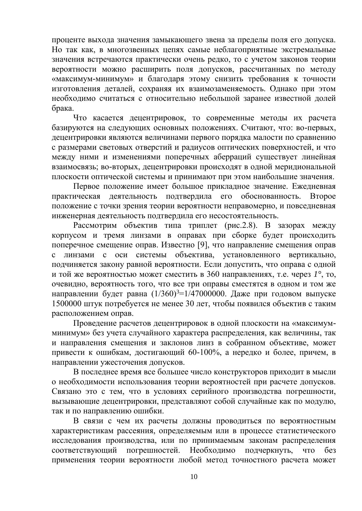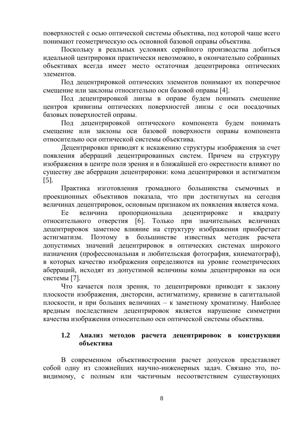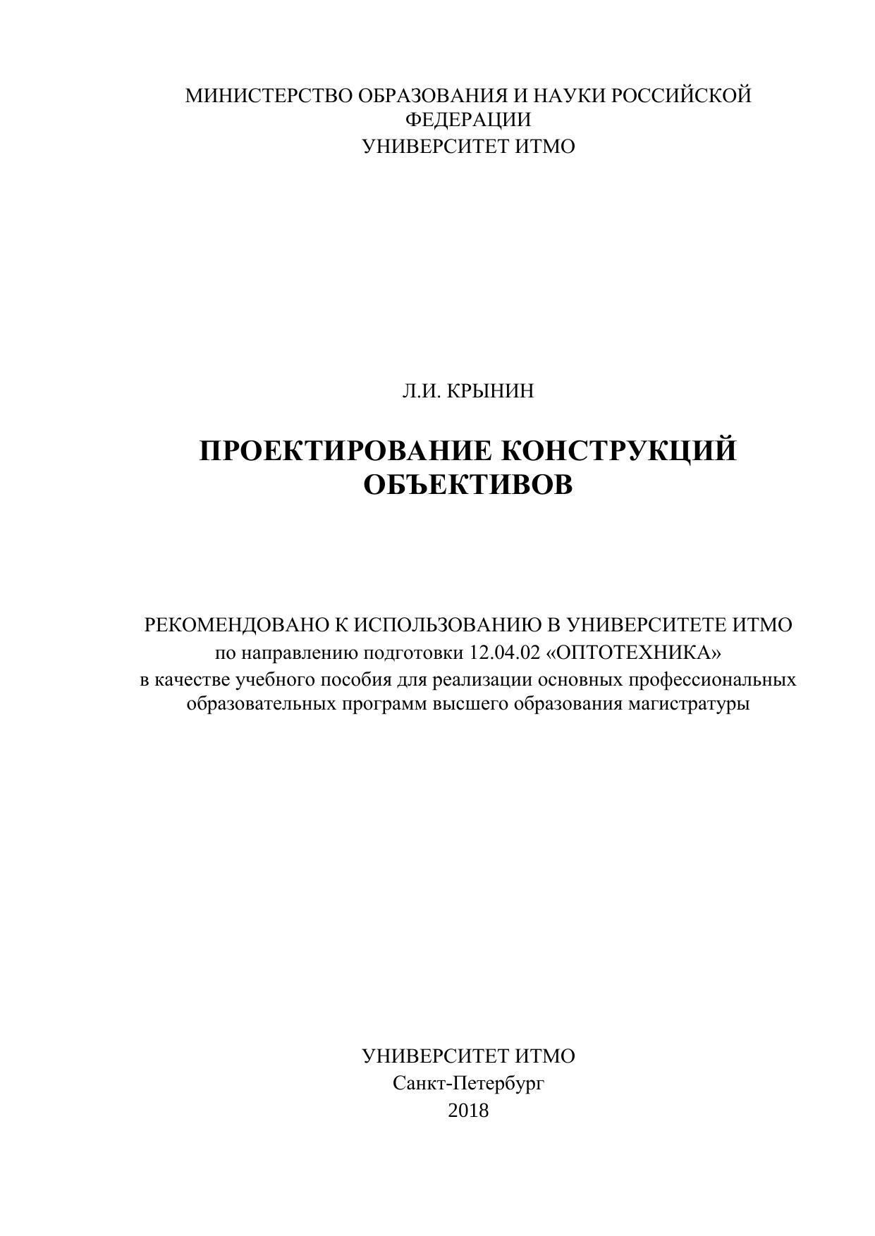 Учебное пособие состоит из двух частей. В первой части рассмотрены вопросы проектирования объективов постоянного фокусного расстояния на базе использования теоретико-вероятностных методов точностного анализа. Основное внимание уделено методикам вероятностного расчёта модуля и проекции векторов децентрировок оптических элементов объектива, возникающих от технологических погрешностей изготовления и результатов статистического исследования производства объективов и их контроля. На многочисленных примерах показана методика составления уравнений, связывающих децентрировки с параметрами качества изображения, и дан их анализ. Во второй части пособия на основе анализа известных конструктивных решений отечественных и зарубежных фирм сформулированы основные принципы проектирования и юстировки объективов переменного фокусного расстояния