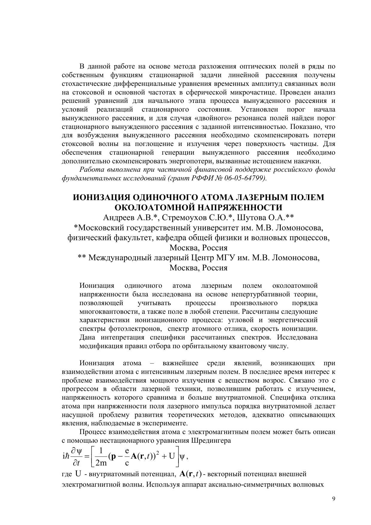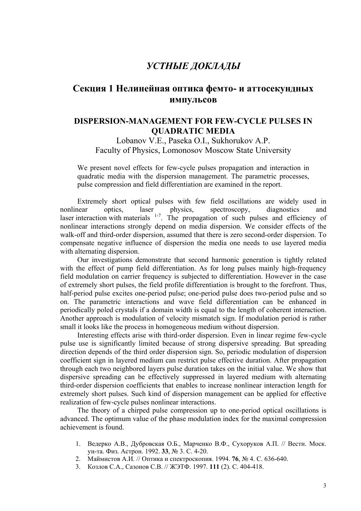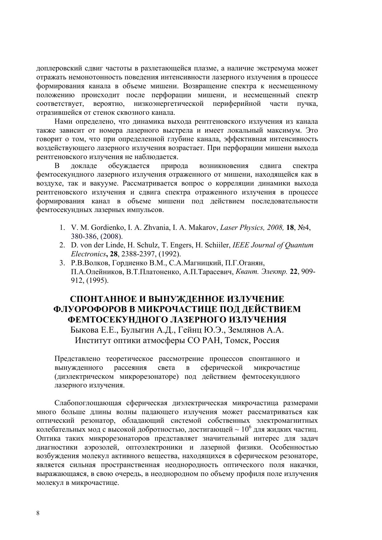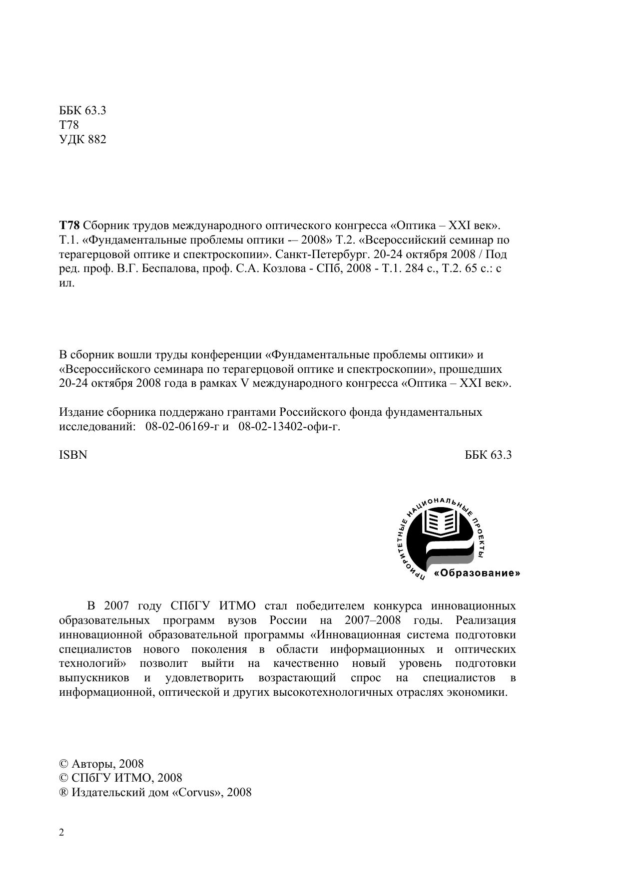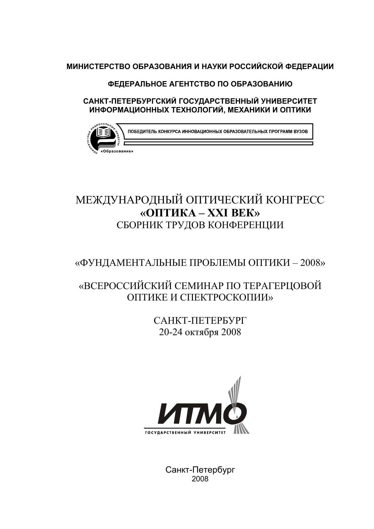 Сборник трудов международного оптического конгресса «Оптика – XXI век». Т.1. «Фундаментальные проблемы оптики -– 2008» Т.2. «Всероссийский семинар по терагерцовой оптике и спектроскопии». Санкт-Петербург. 20-24 октября 2008