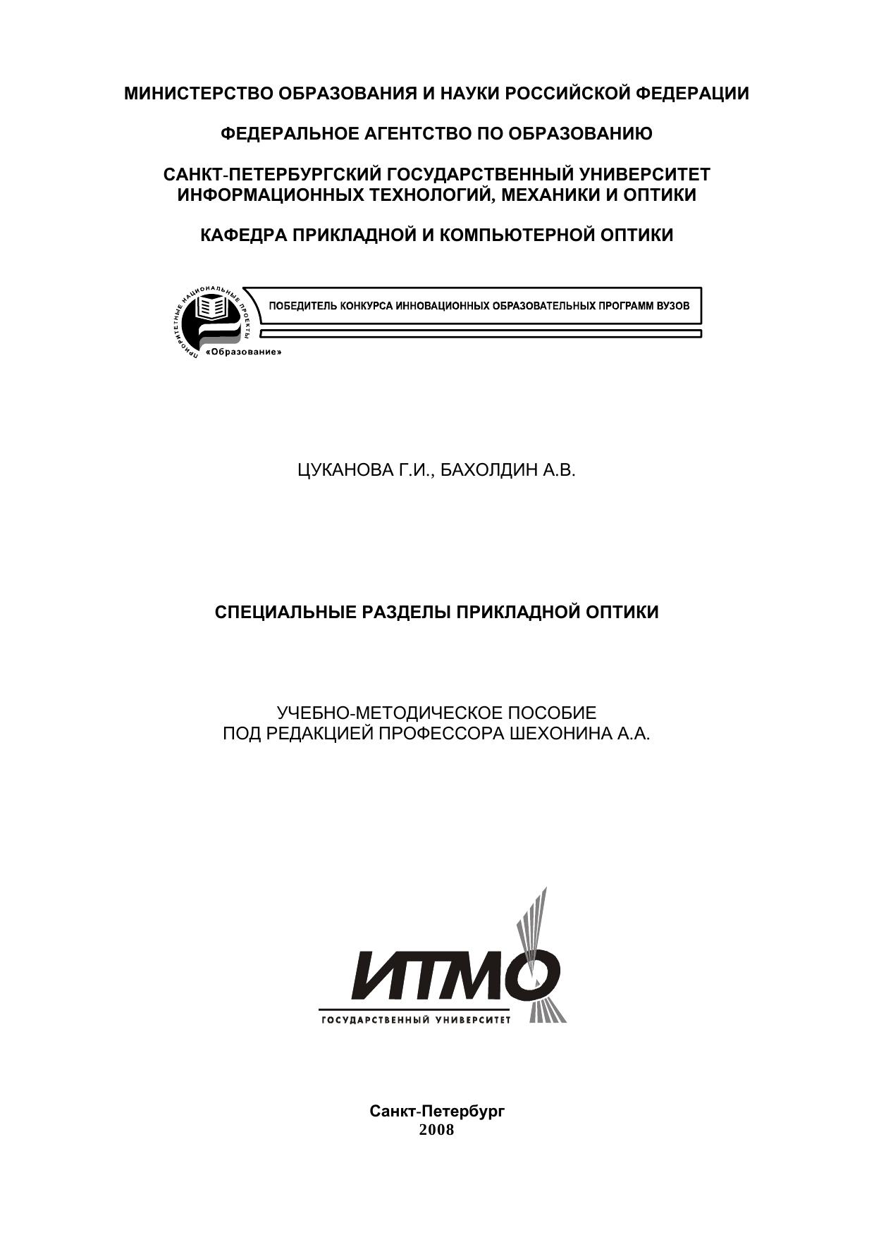 Специальные разделы прикладной оптики