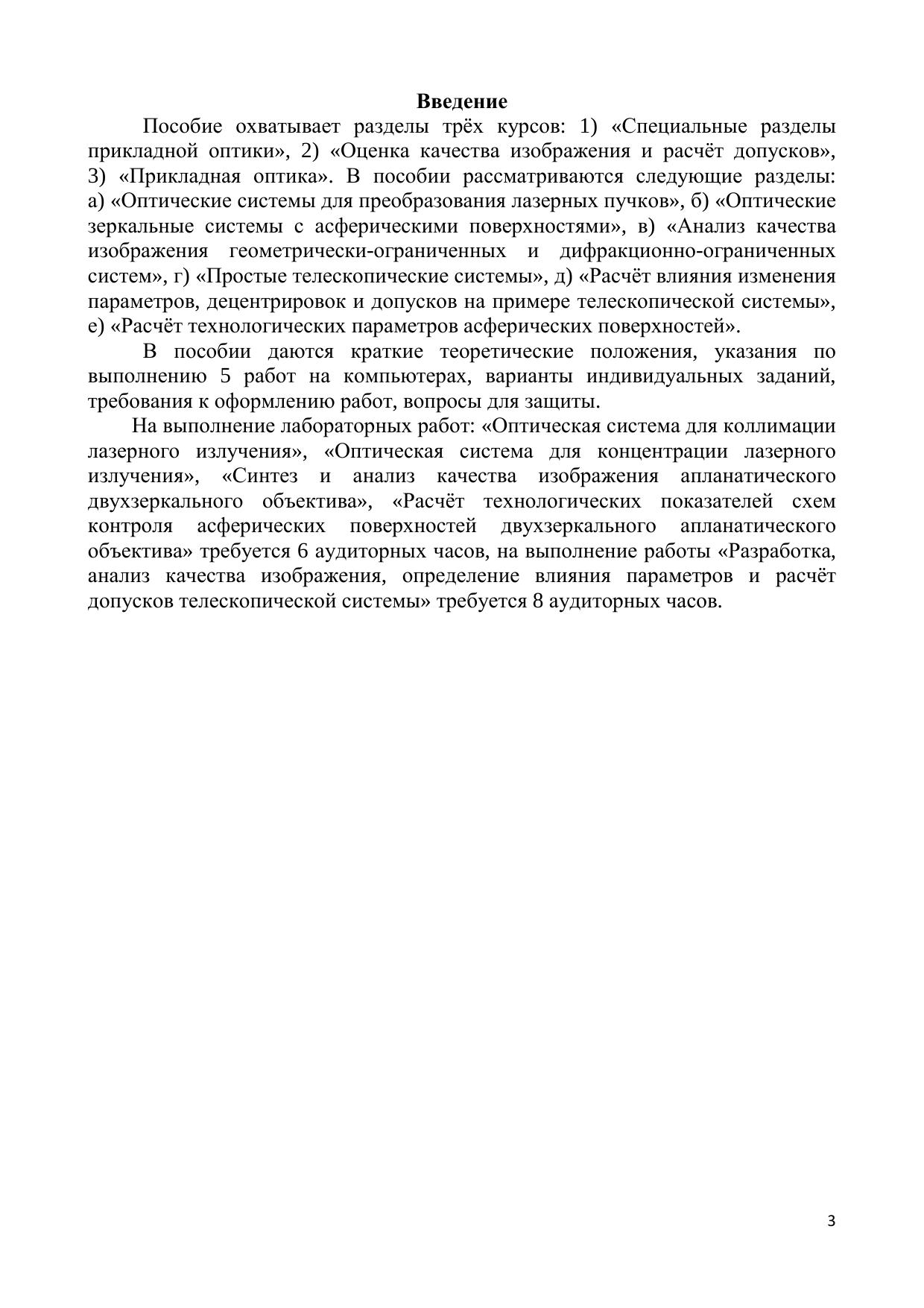 В учебно-методическом пособии приводятся краткие теоретические сведения, варианты индивидуальных заданий, указания по выполнению 5 лабораторных работ на компьютерах по курсам «Специальные разделы прикладной оптики», «Оценка качества изображения и расчёт допусков», «Прикладная оптика». Для студентов направления подготовки 200200 «Оптотехника» и специальности 200203.65 «Оптико-электронные приборы и системы».