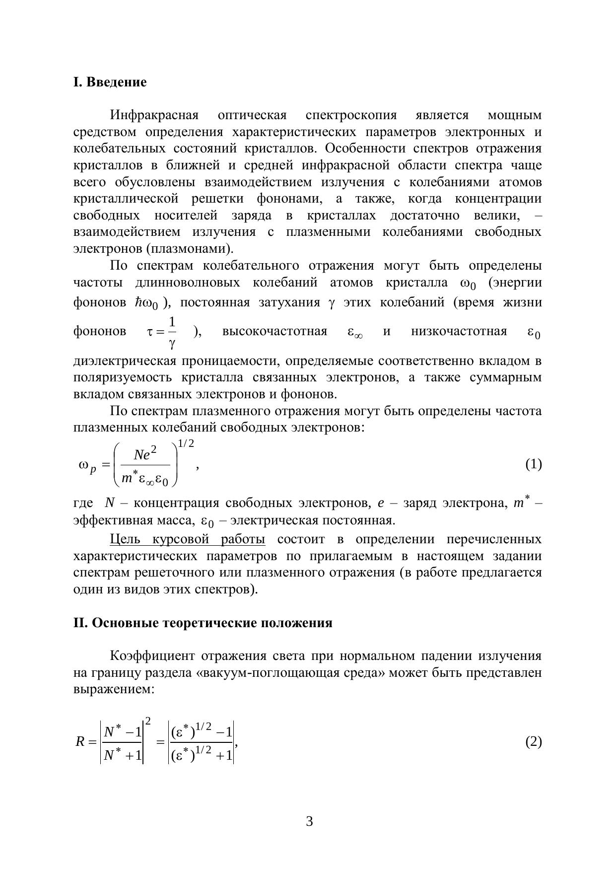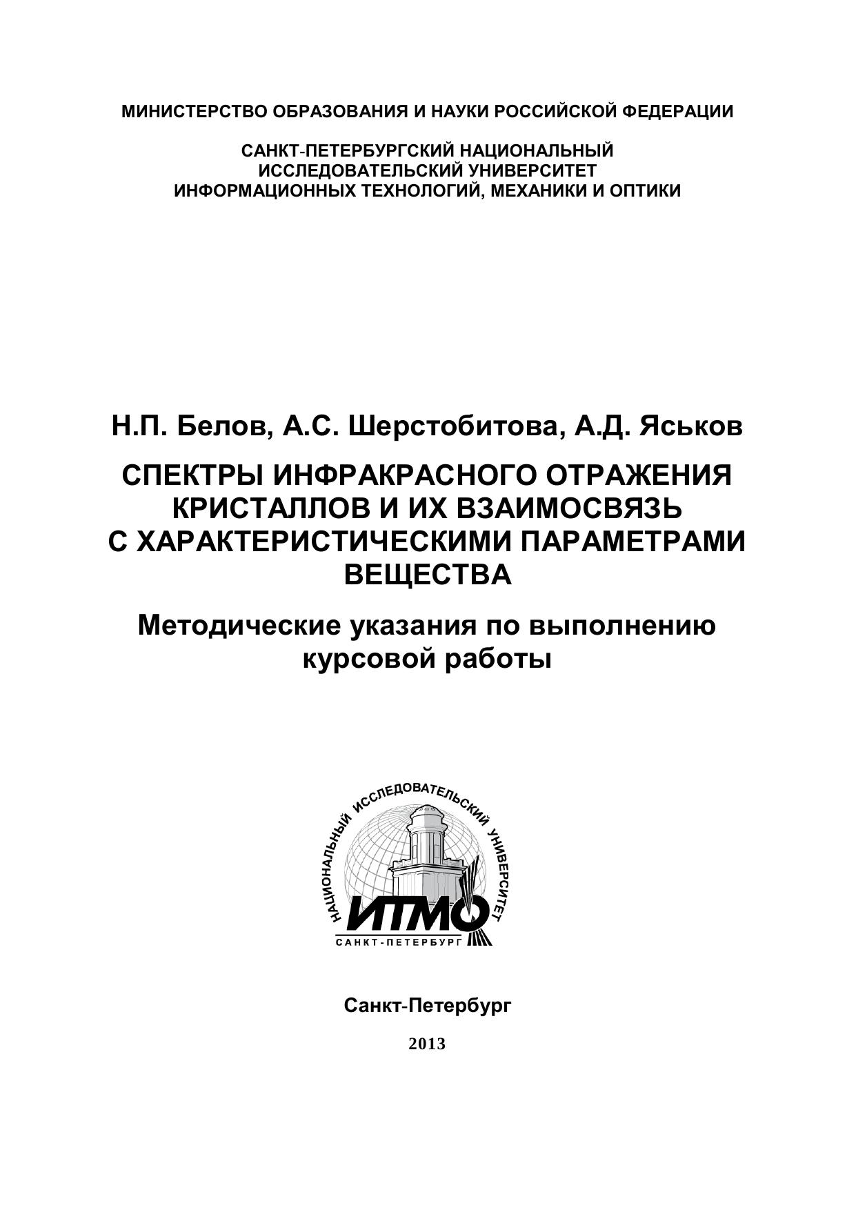 Спектры инфракрасного отражения кристаллов и их взаимосвязь с характеристическими параметрами вещества. Методические указания по выполнению курсовой работы