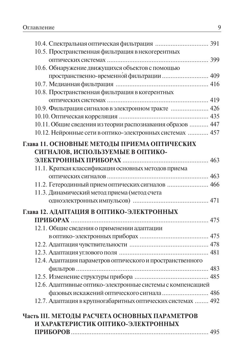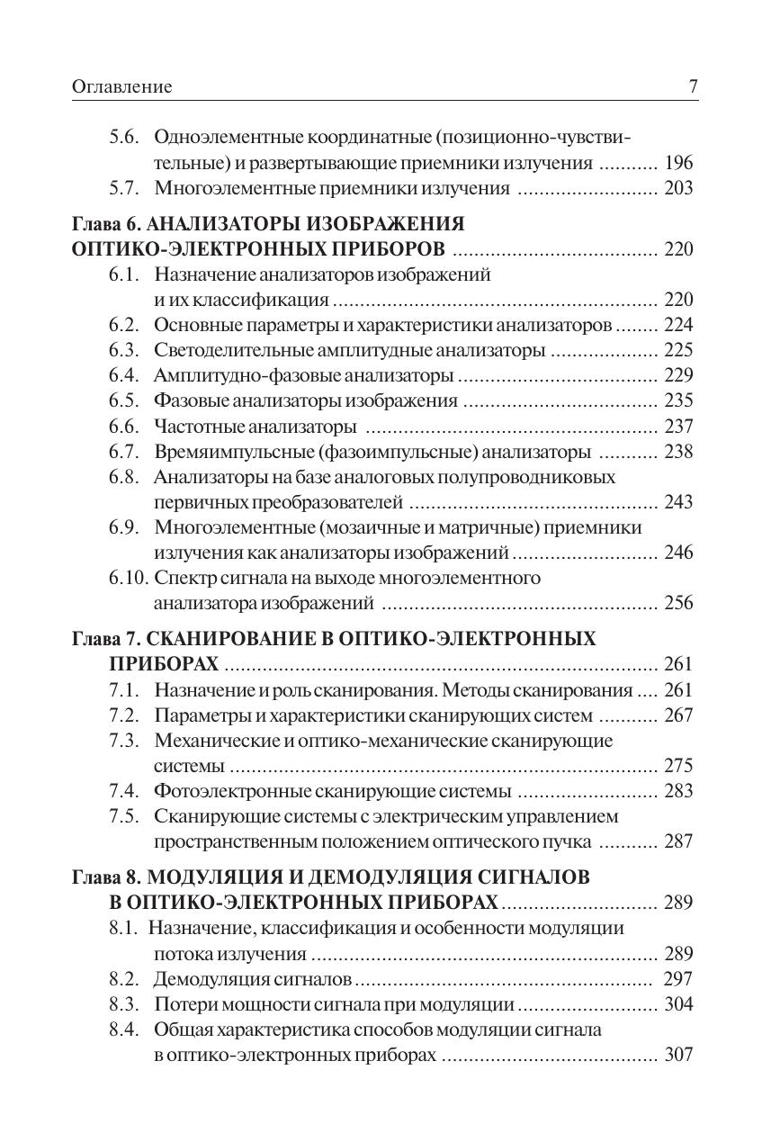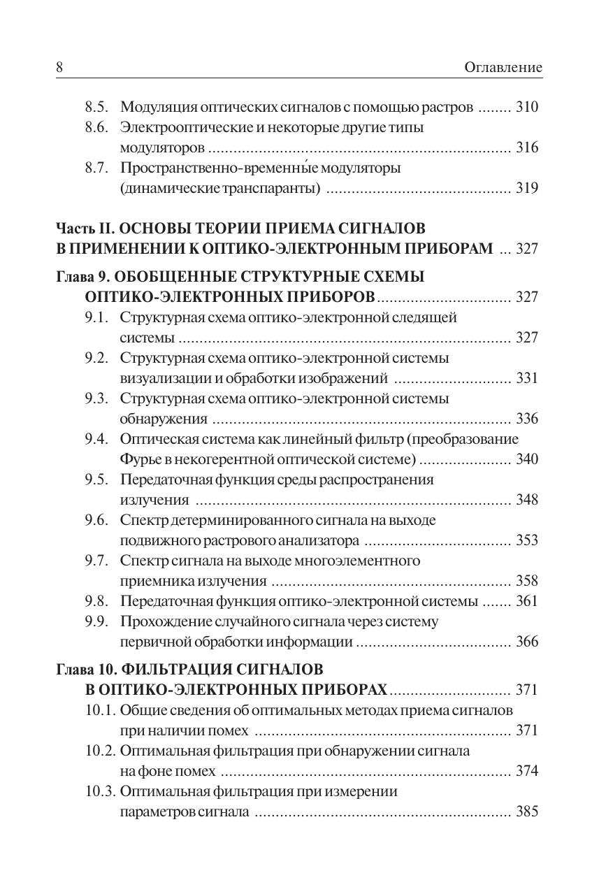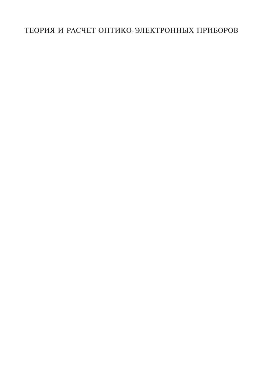 Изложены физические основы построения оптико-электронных приборов (ОЭП). Описаны типовые узлы системы первичной обработки информации ОЭП: источники и приемники оптического излучения, оптическая система, анализаторы изображения, сканирующие системы, модуляторы. Рассмотрены основы общей теории приема сигналов применительно к ОЭП. Особое внимание уделено расчету и выбору параметров и характеристик типовых узлов системы первичной обработки информации оптико-электронного прибора с точки зрения оптимального их согласования между собой. В отличие от 5-го издания во введение и четвертый раздел включены данные о новых оптических материалах, появившихся в последние годы, а в пятом разделе приведены сведения о перспективных многоэлементных приемниках излучения. Для студентов высших учебных заведений, обучающихся по направлению 200200 — «Оптотехника». Представляет интерес для специалистов, занимающихся проектированием ОЭП различного назначения.
