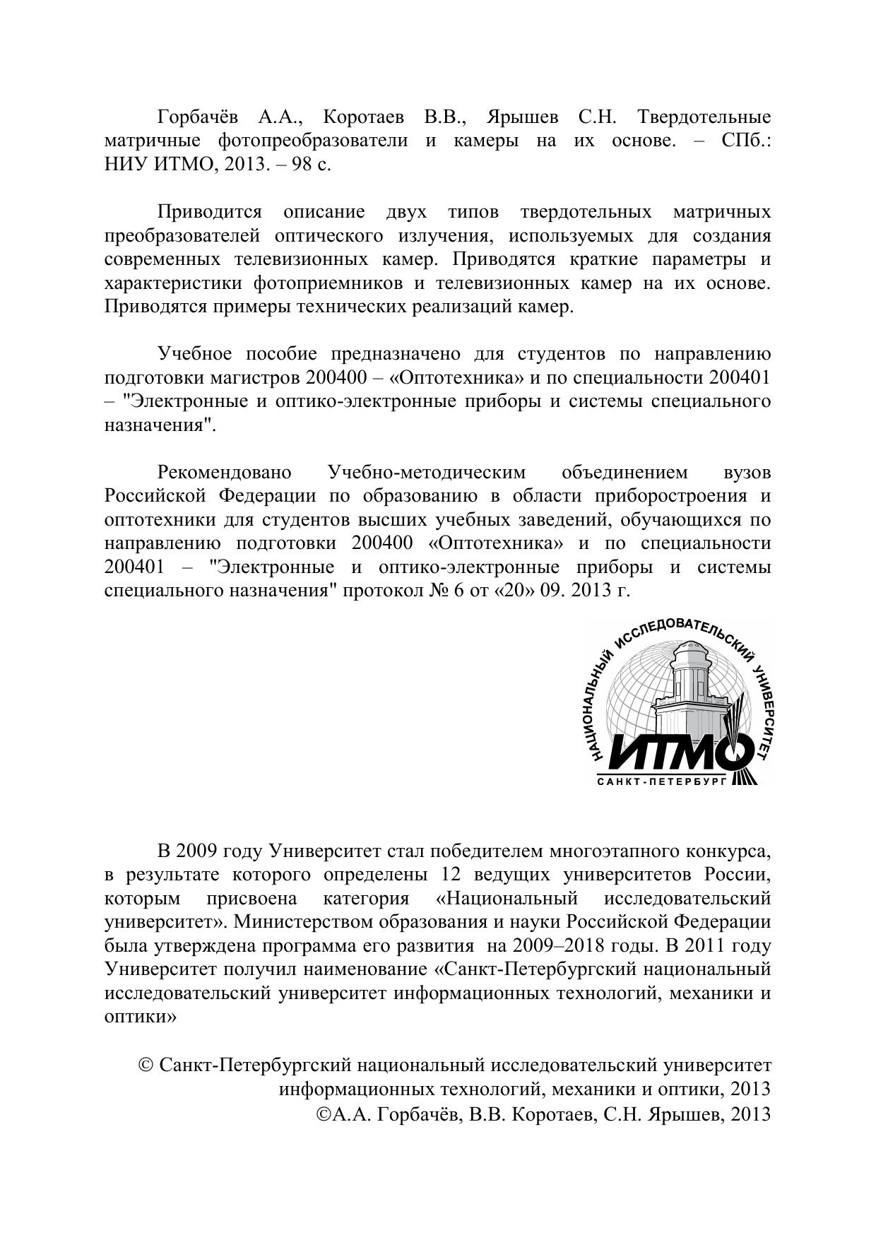 Гриф: Рекомендовано Учебно-методическим объединением вузов Российской Федерации по образованию в области приборостроения и оптотехники для студентов высших учебных заведений, обучающихся по направлению подготовки 200400 «Оптотехника» и по специальности 200401 – "Электронные и оптико-электронные приборы и системы специального назначения"