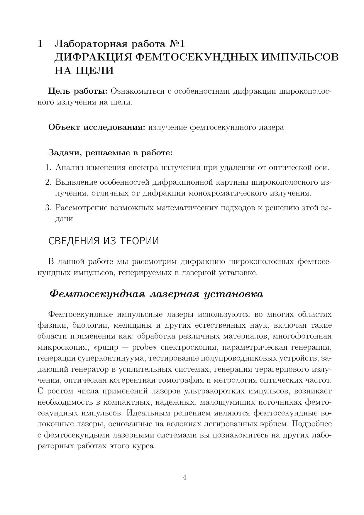 Виртуальный лабораторный практикум: Фемтосекундная оптика и фемтотехнологии