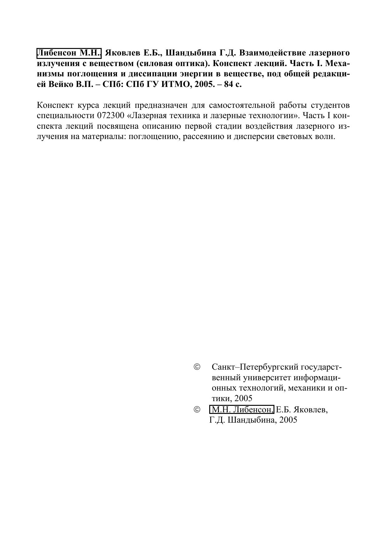 Авторы: Либенсон М.Н., Яковлев Е.Б., Шандыбина Г.Д.