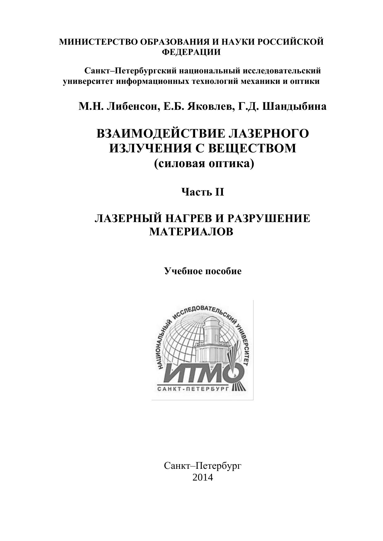 Взаимодействие лазерного излучения с веществом (силовая оптика). Часть II. Лазерный нагрев и разрушение материалов. Учебное пособие