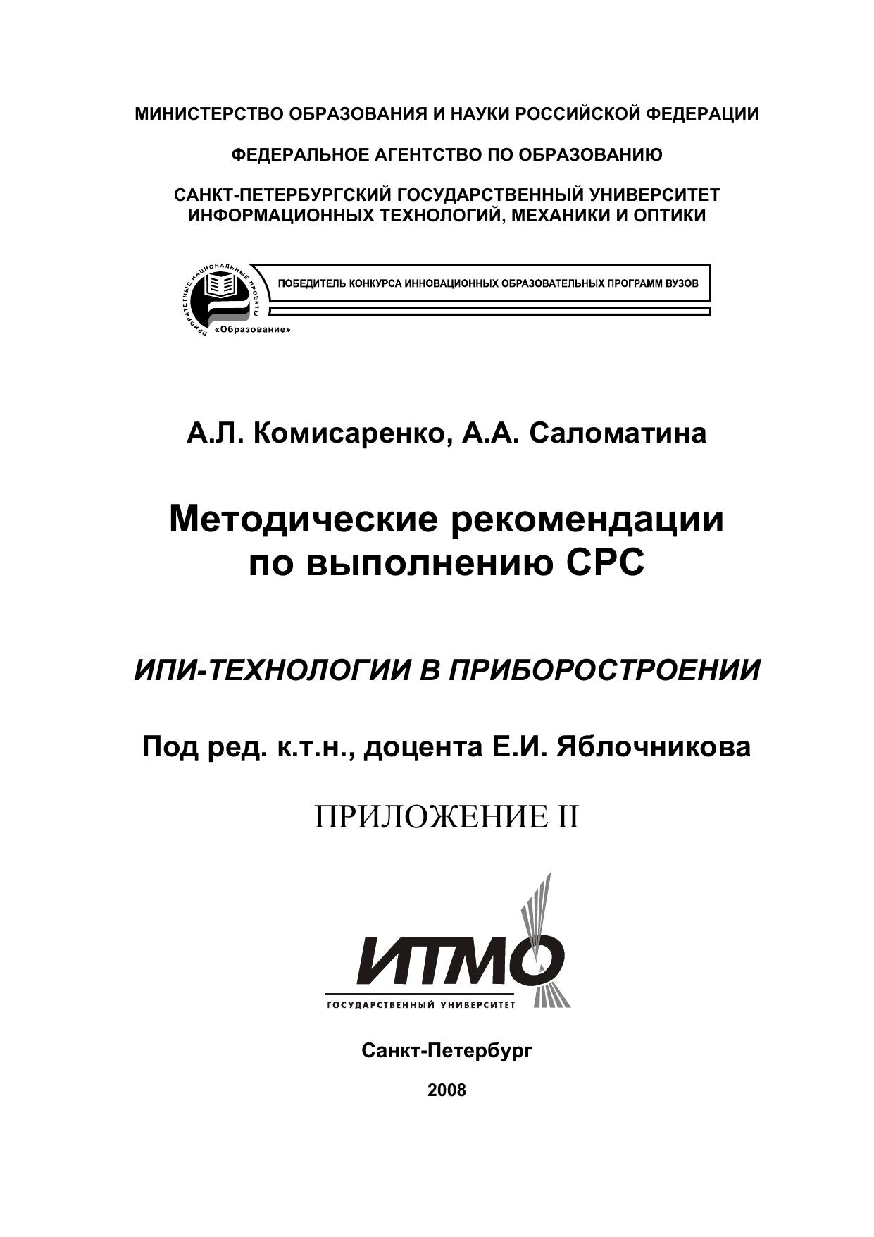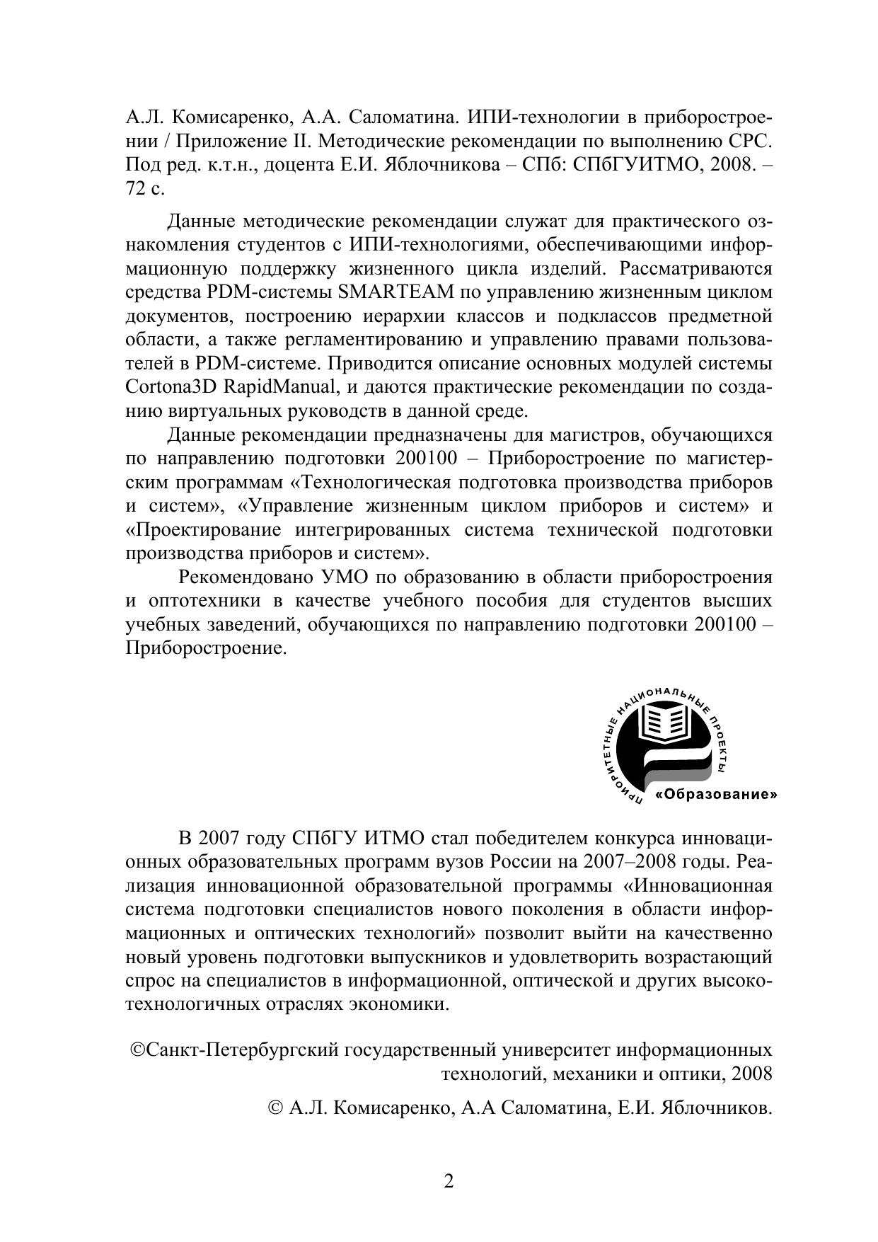 Данные рекомендации предназначены для магистров, обучающихся по направлению подготовки 200100 – Приборостроение по магистерским программам «Технологическая подготовка производства приборов и систем», «Управление жизненным циклом приборов и систем» и «Проектирование интегрированных система технической подготовки производства приборов и систем».