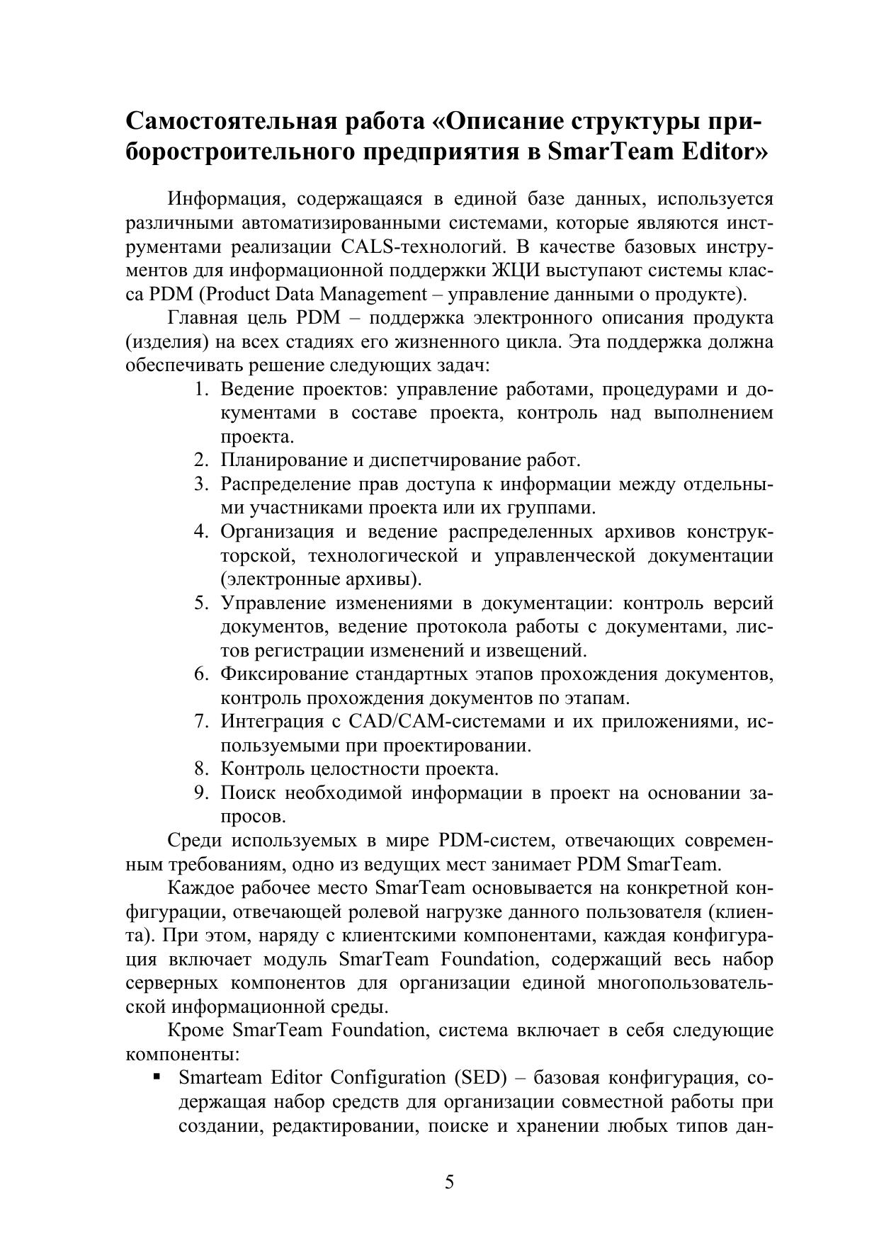 Данные методические рекомендации служат для практического ознакомления студентов с ИПИ-технологиями, обеспечивающими информационную поддержку жизненного цикла изделий. Рассматриваются средства PDM-системы SMARTEAM по управлению жизненным циклом документов, построению иерархии классов и подклассов предметной области, а также регламентированию и управлению правами пользователей в PDM-системе. Приводится описание основных модулей системы Cortona3D RapidManual, и даются практические рекомендации по созданию виртуальных руководств в данной среде.