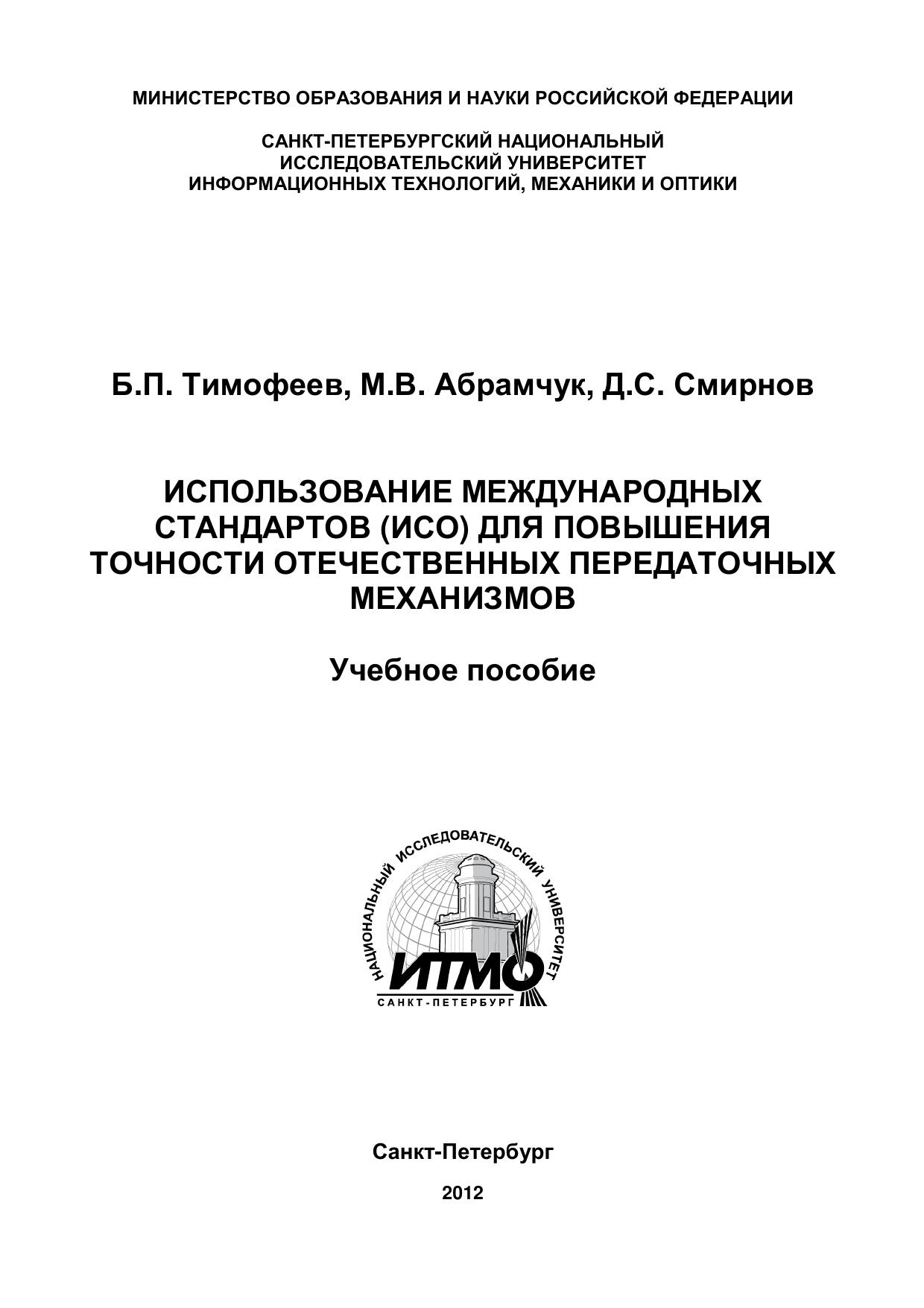 Использование международных стандартов (ИСО) для повышения точности отечественных передаточных механизмов. Учебное пособие