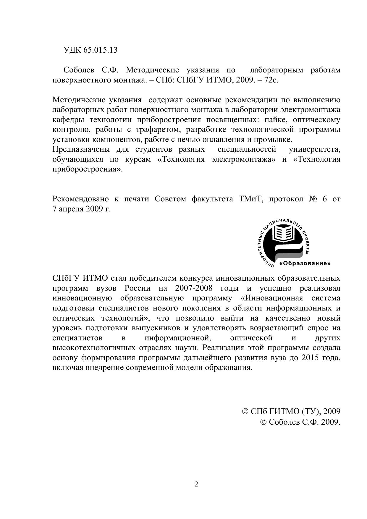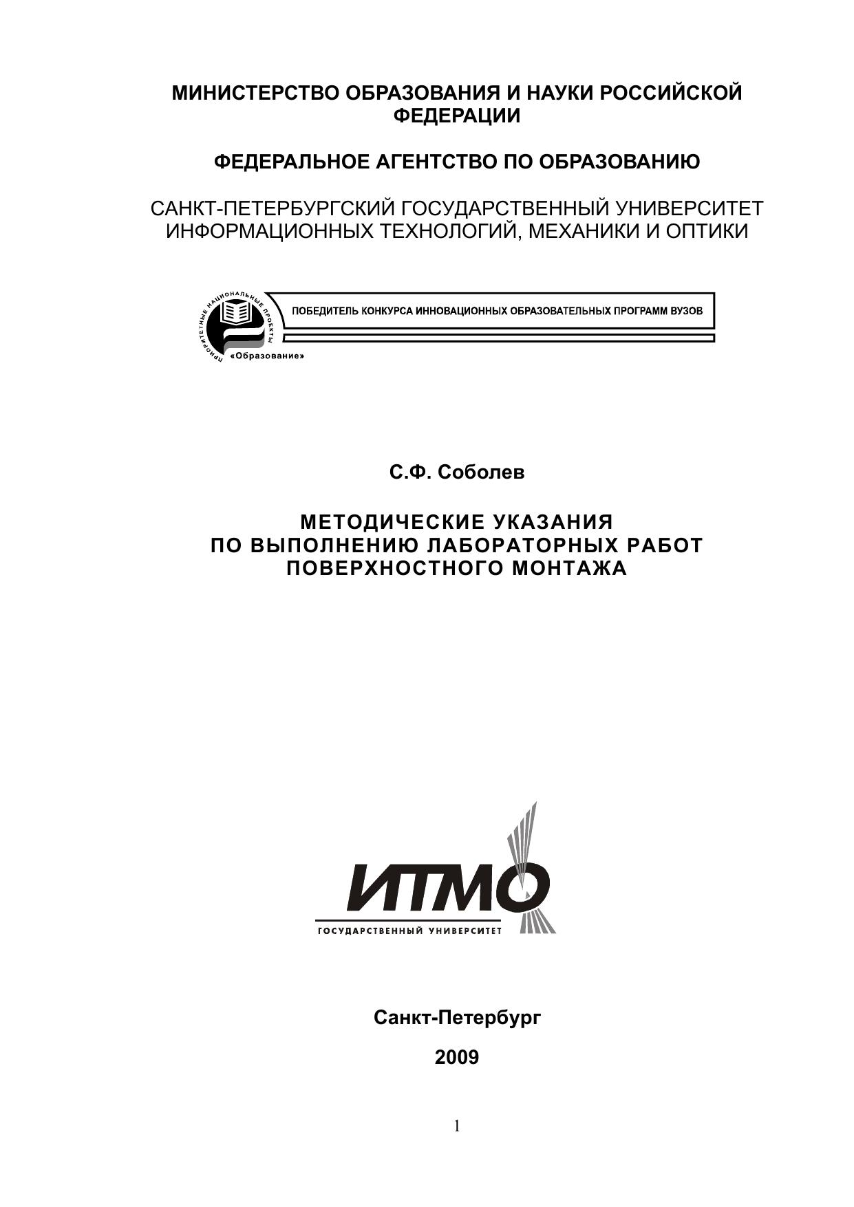 Методические указания по лабораторным работам поверхностного монтажа