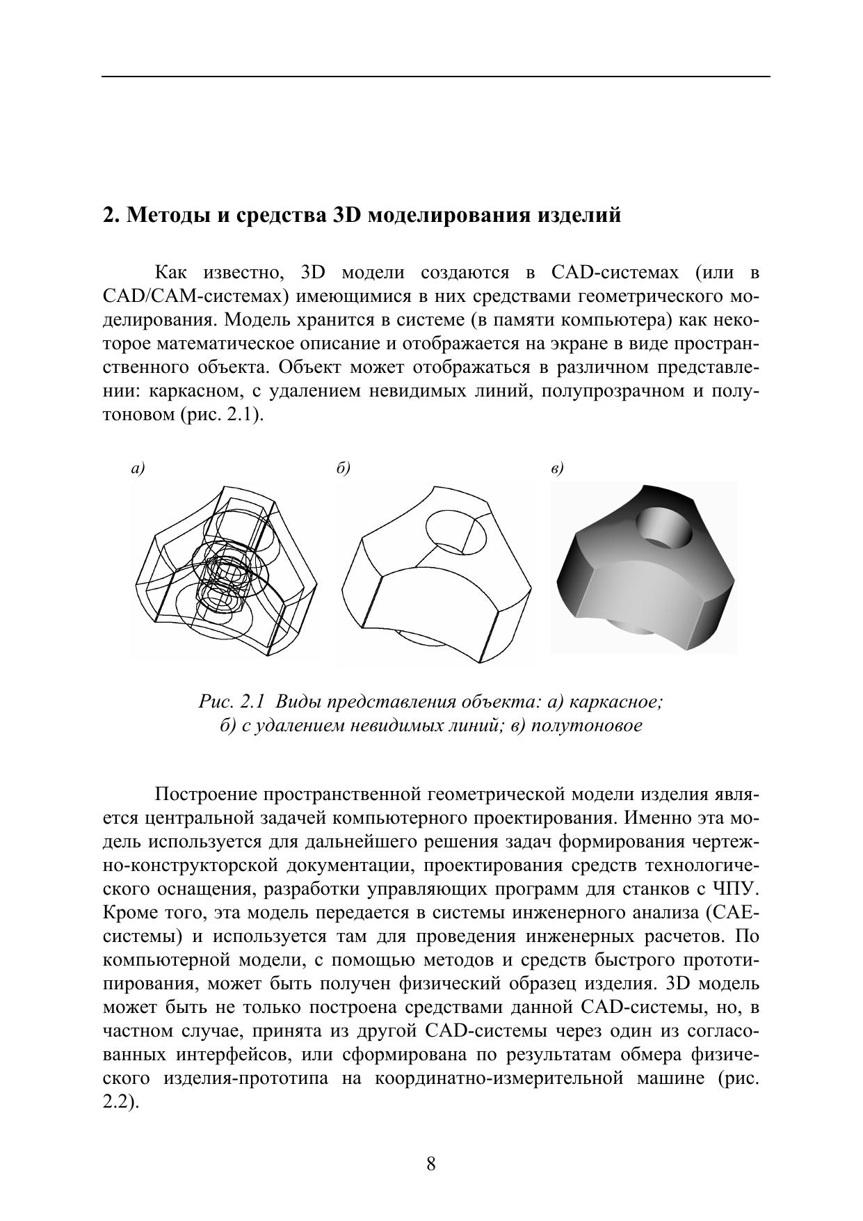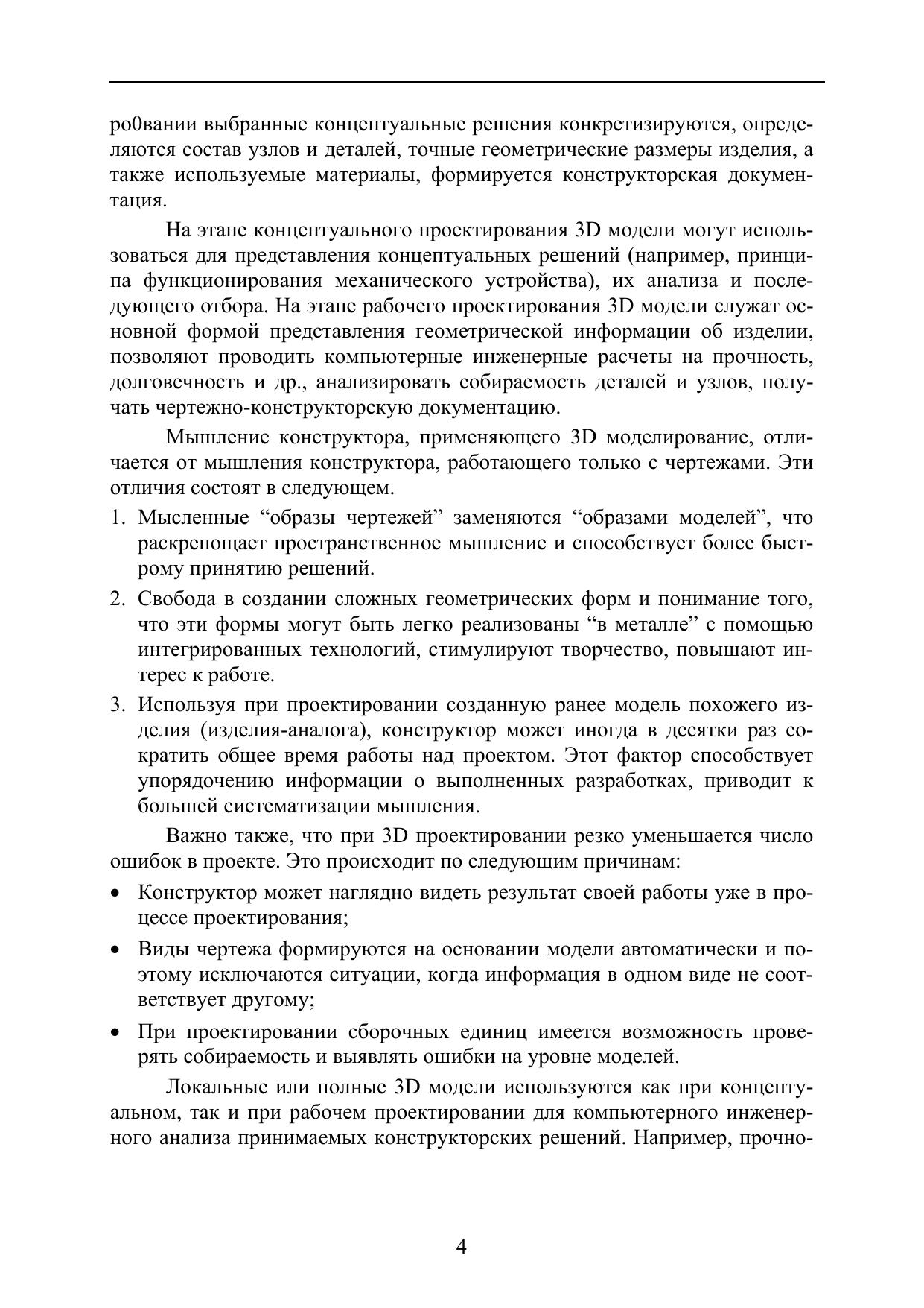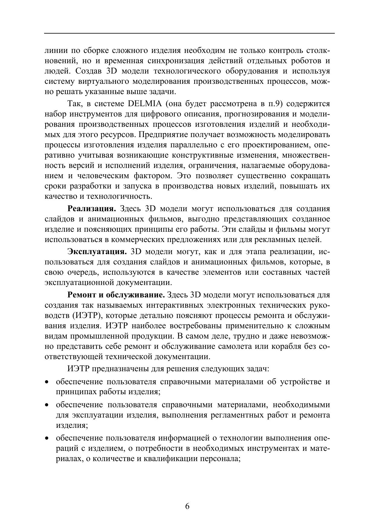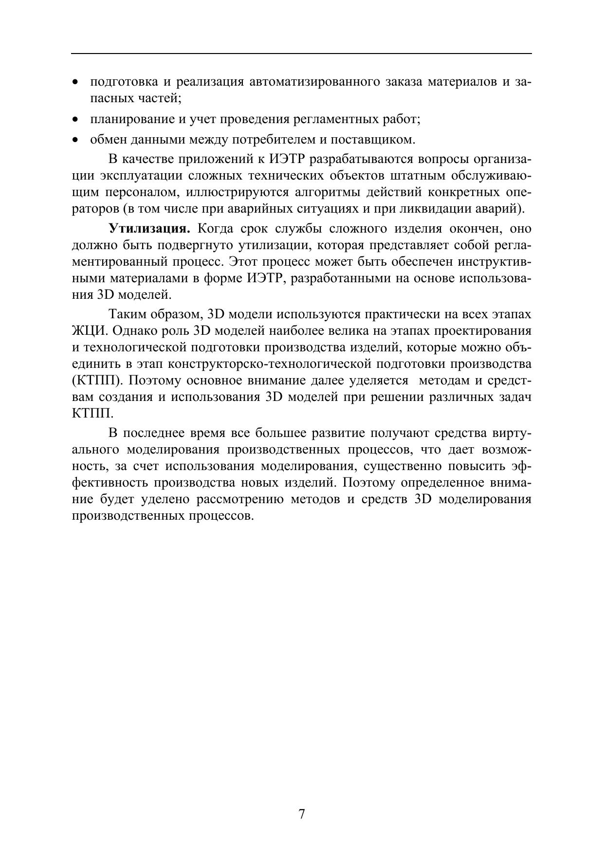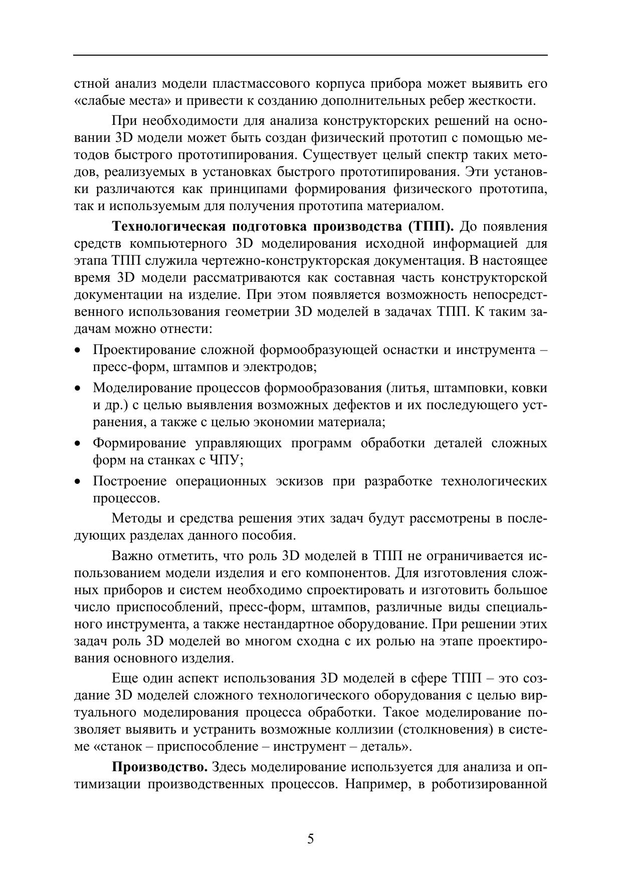 Данное учебное пособие предназначено для изучения методов использования 3D моделей при создании новых изделий приборостроения и машиностроения. Дан анализ роли 3D моделей на различных этапах жизненного цикла изделий. Рассмотрены методы и средства 3D моделирования, а также методы использования 3D моделей при решении задач инженерного анализа, проектирования сложной формообразующей оснастки и инструмента, технологических процессов обработки на станках с ЧПУ и маршрутно-операционных технологических процессов. Даны сведения о методах и средствах виртуального моделирования производственных процессов. Описаны методы интеграции 3D моделей в единое информационное пространство конструкторско-технологической подготовки производства.