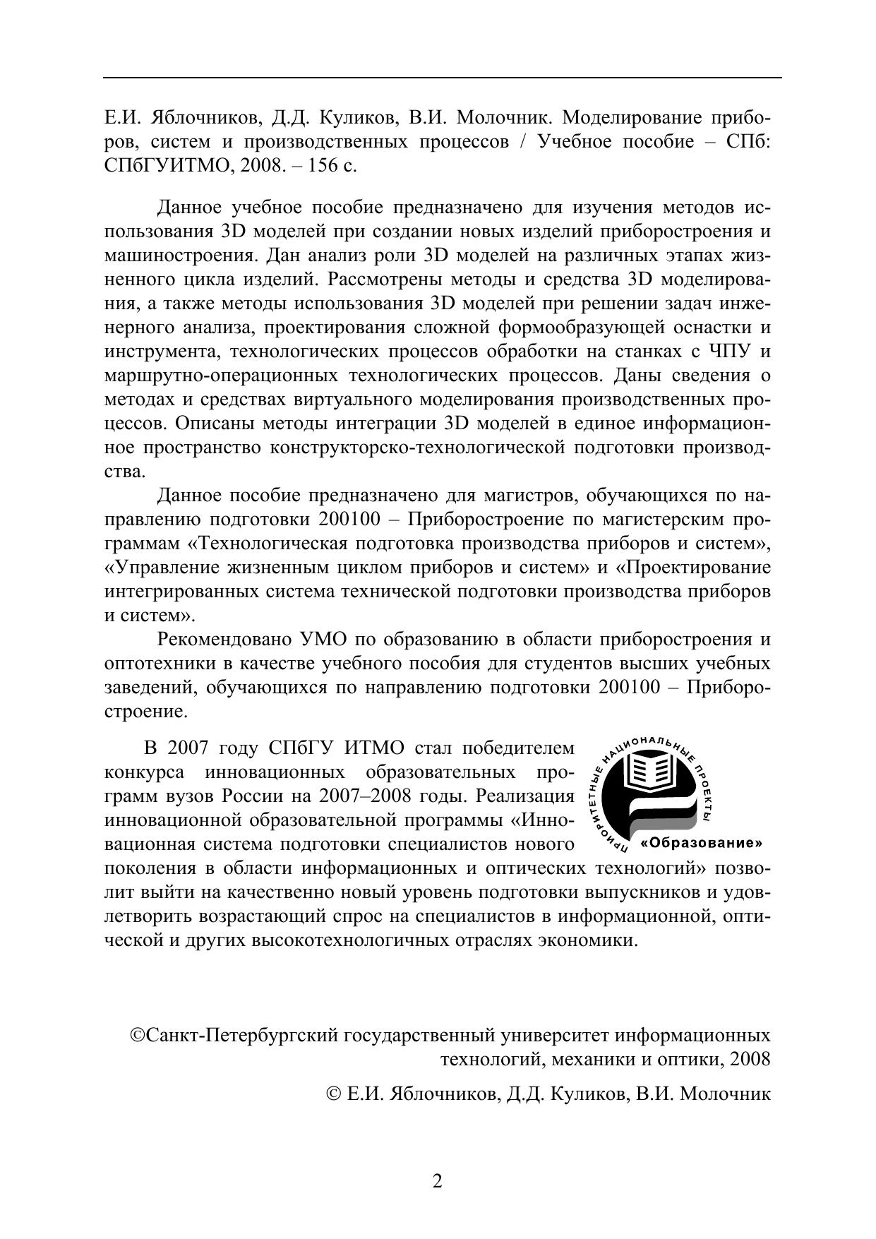 Данное пособие предназначено для магистров, обучающихся по направлению подготовки 200100 – Приборостроение по магистерским программам «Технологическая подготовка производства приборов и систем», «Управление жизненным циклом приборов и систем» и «Проектирование интегрированных система технической подготовки производства приборов и систем».