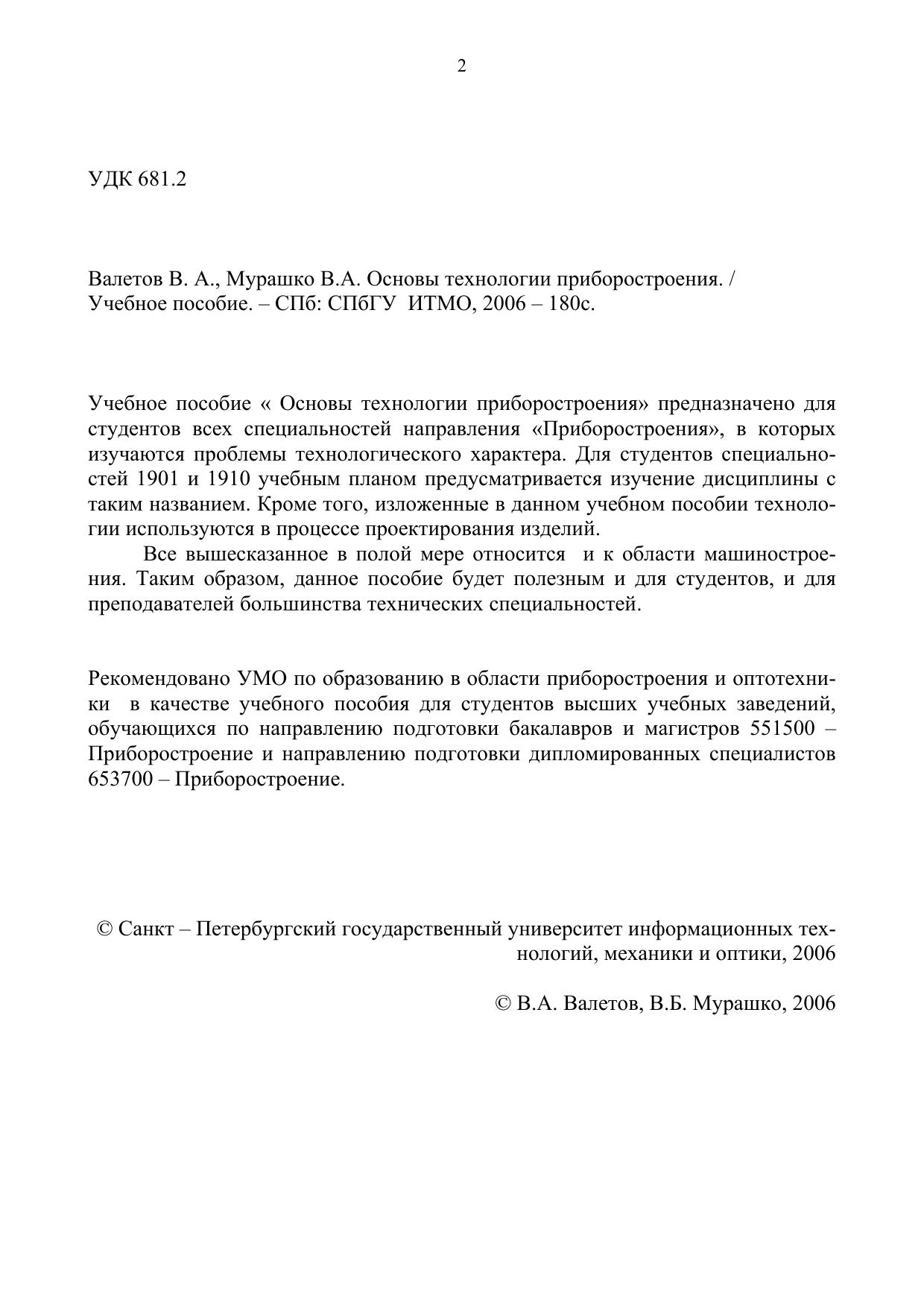 Учебное пособие « Основы технологии приборостроения» предназначено для студентов всех специальностей направления «Приборостроения», в которых изучаются проблемы технологического характера. Для студентов специальностей 1901 и 1910 учебным планом предусматривается изучение дисциплины с таким названием. Кроме того, изложенные в данном учебном пособии технологии используются в процессе проектирования изделий. Все вышесказанное в полой мере относится и к области машиностроения. Таким образом, данное пособие будет полезным и для студентов, и для преподавателей большинства технических специальностей.