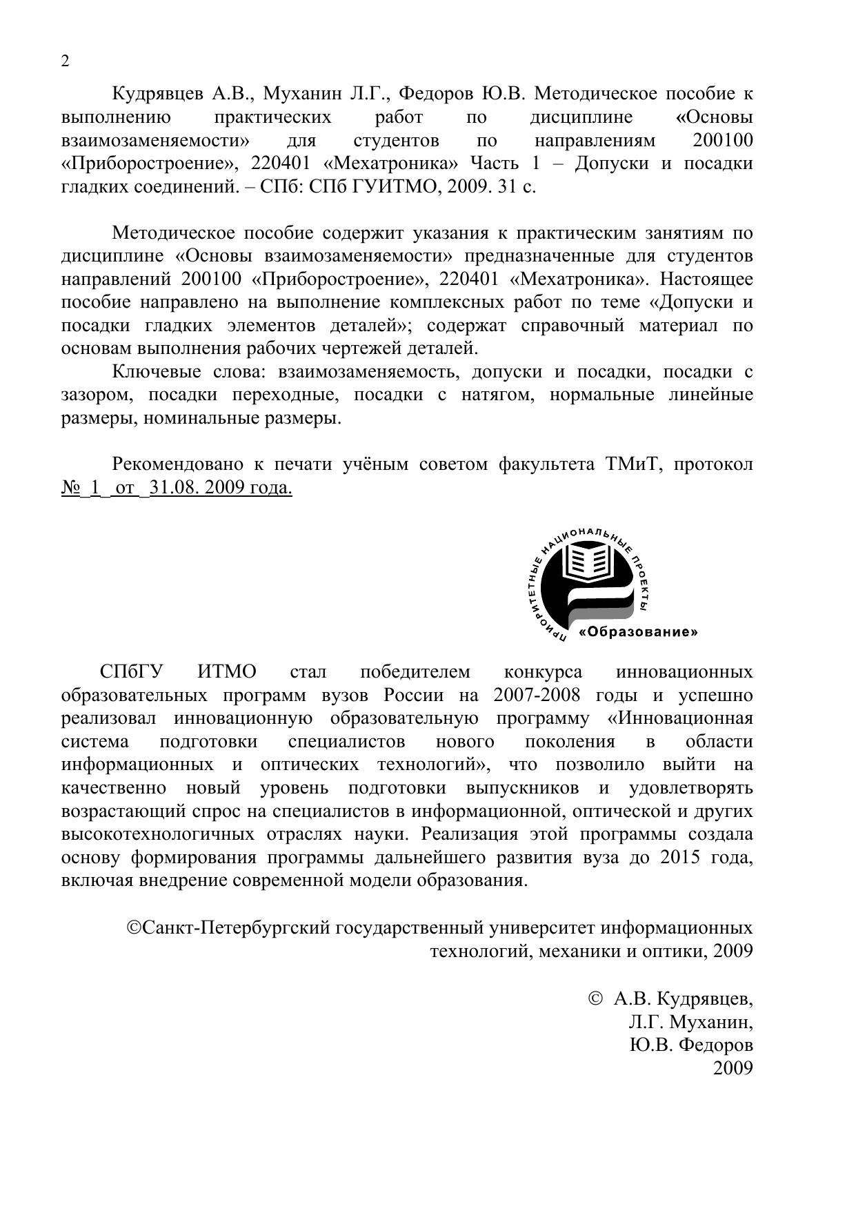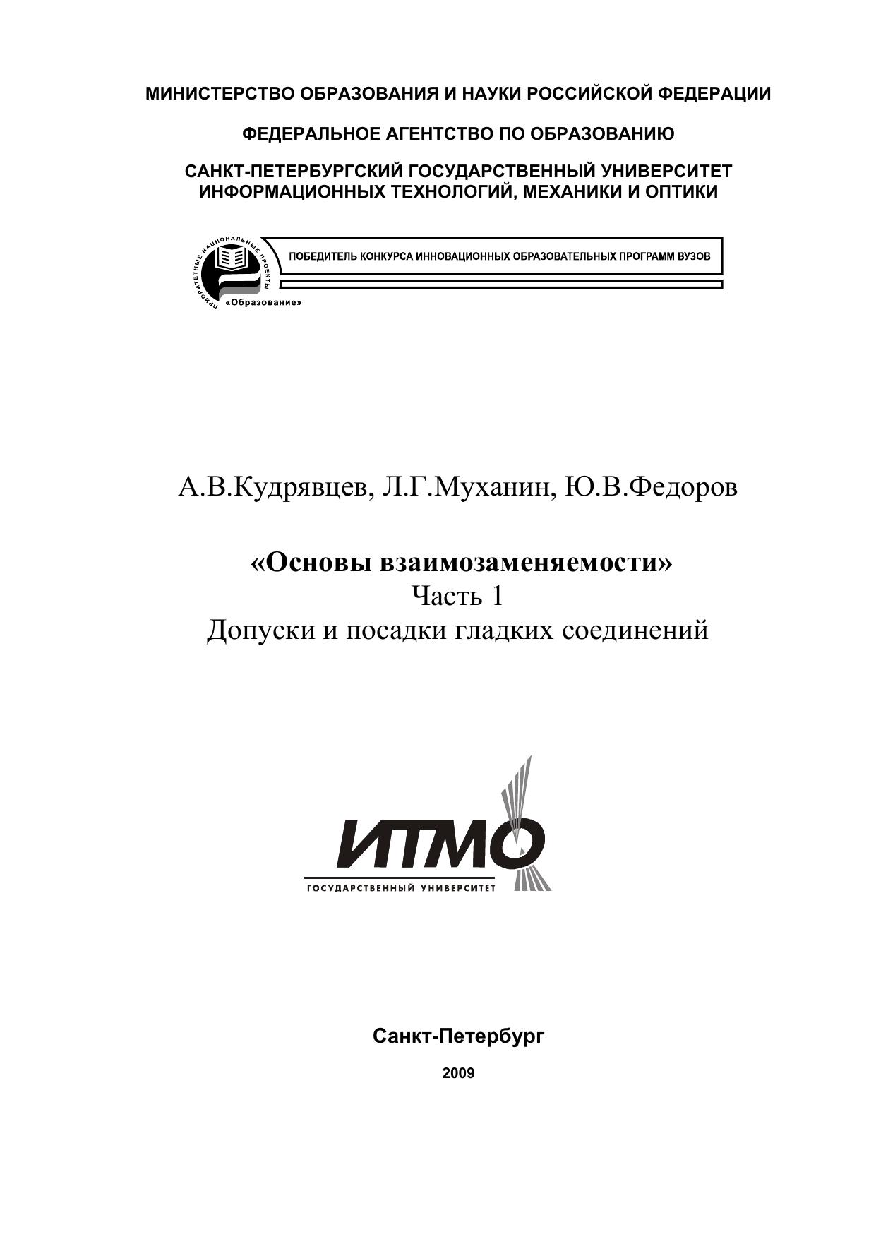 Методическое пособие содержит указания к практическим занятиям по дисциплине «Основы взаимозаменяемости» предназначенные для студентов направлений 200100 «Приборостроение», 220401 «Мехатроника». Настоящее пособие направлено на выполнение комплексных работ по теме «Допуски и посадки гладких элементов деталей»; содержат справочный материал по основам выполнения рабочих чертежей деталей.