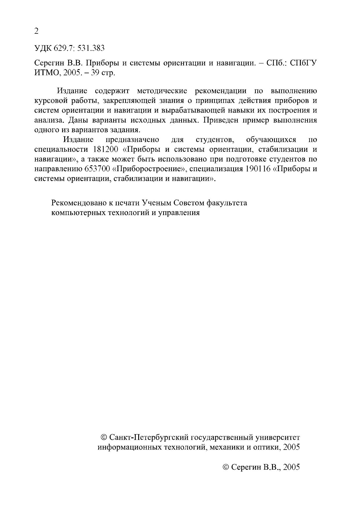Издание содержит методические рекомендации по выполнению курсовой работы, закрепляющей знания о принципах действия приборов и систем ориентации и навигации и вырабатывающей навыки их построения и анализа. Даны варианты исходных данных. Приведен пример выполнения одного из вариантов задания. Издание предназначено для студентов, обучающихся по специальности 181200 «Приборы и системы ориентации, стабилизации и навигации», а также может быть использовано при подготовке студентов по направлению 653700 «Приборостроение», специализация 190116 «Приборы и системы ориентации, стабилизации и навигации».