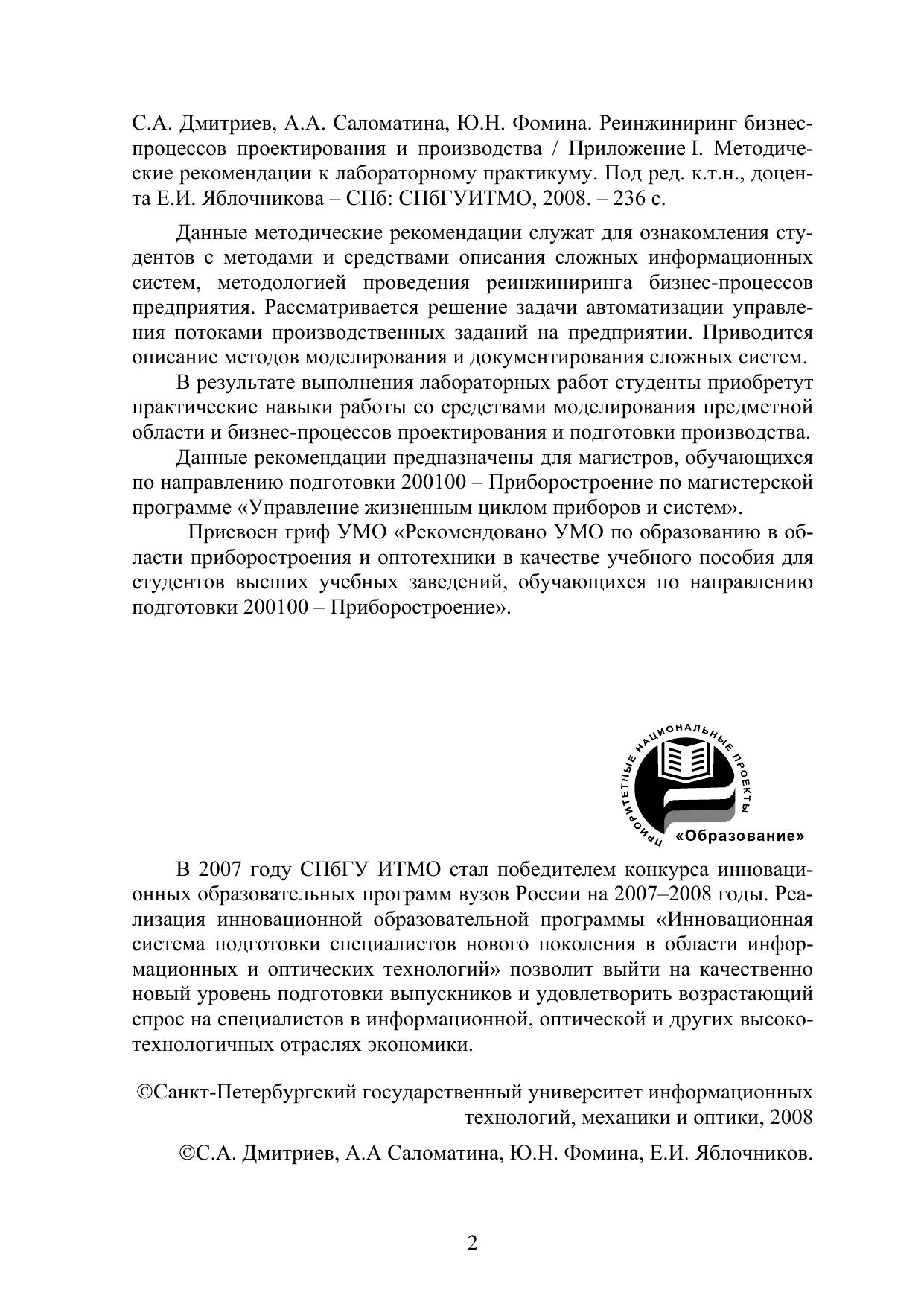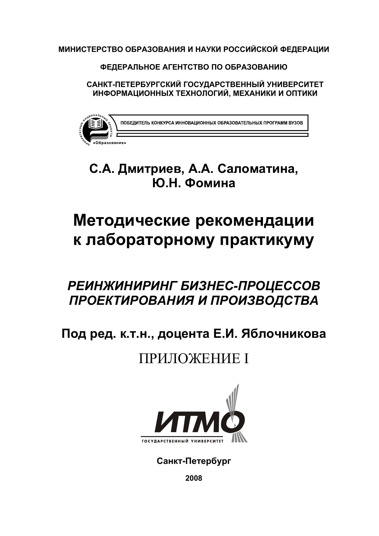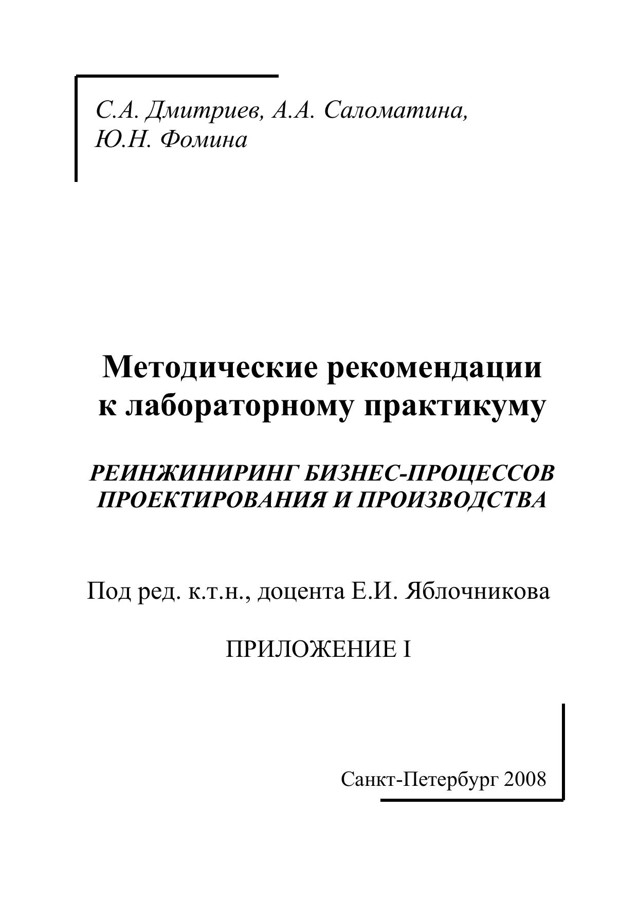 Реинжиниринг бизнес-процессов проектирования и производства. Приложение I. Методические рекомендации к лабораторному практикуму