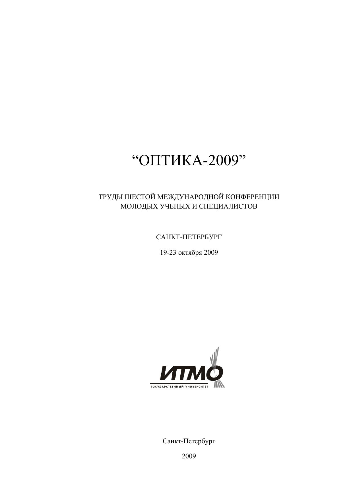 Данная книга содержит труды шестой международной конференции молодых ученых и специалистов “Оптика-2009”, Санкт-Петербург, 19-23 октября 2009 года. В книге представлены работы молодых ученых и специалистов, посвященныепроблемам современной оптики, в том числе по нелинейной и когерентной оптике, оптическому приборостроению, оптическим материалам и технологиям, физической оптике, спектроскопии, физике лазеров и лазерным технологиям, оптике иобразованию, а также по терагерцовой оптике и оптическим метаматериалам, фотонным кристаллам и наноструктурам.
