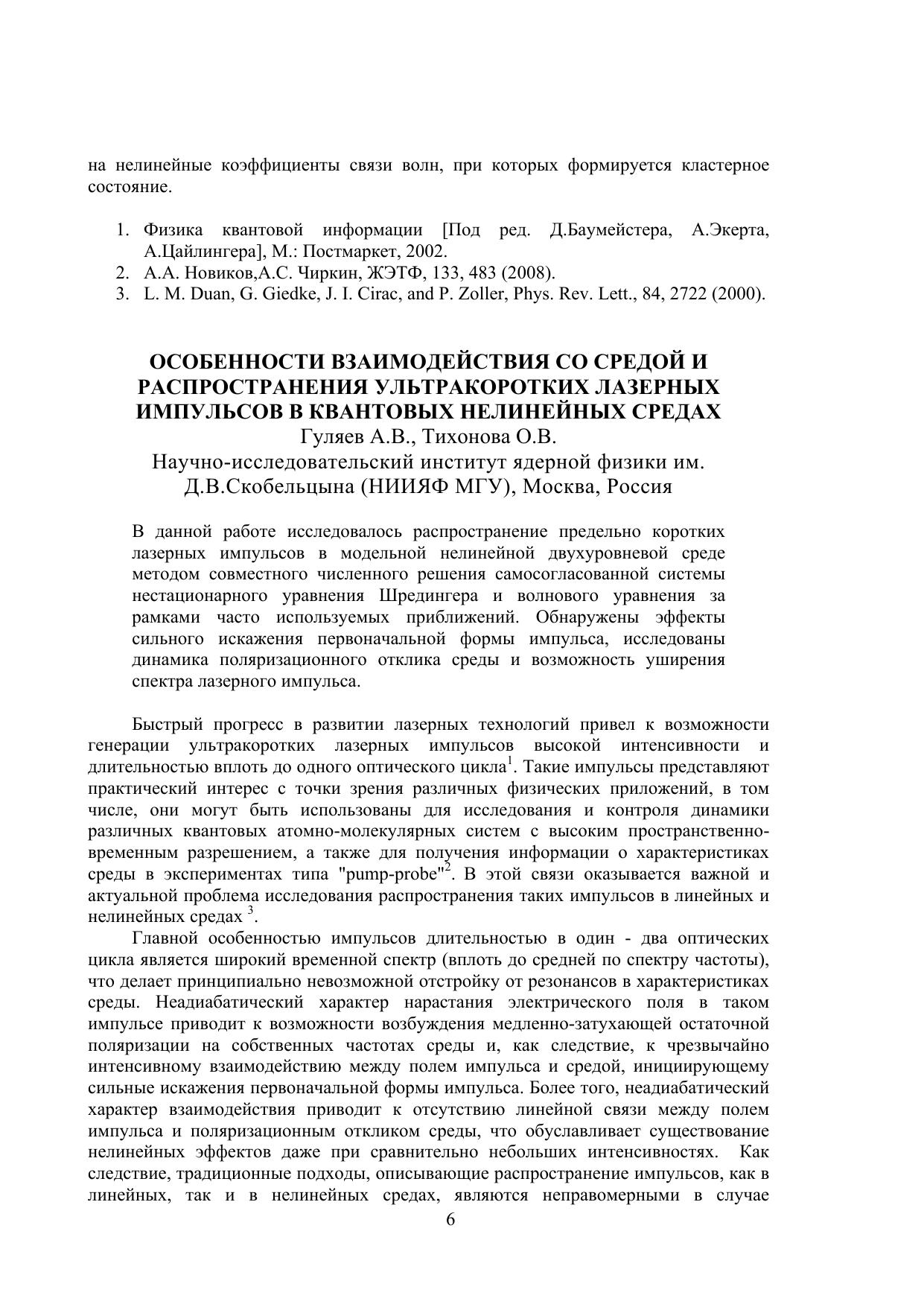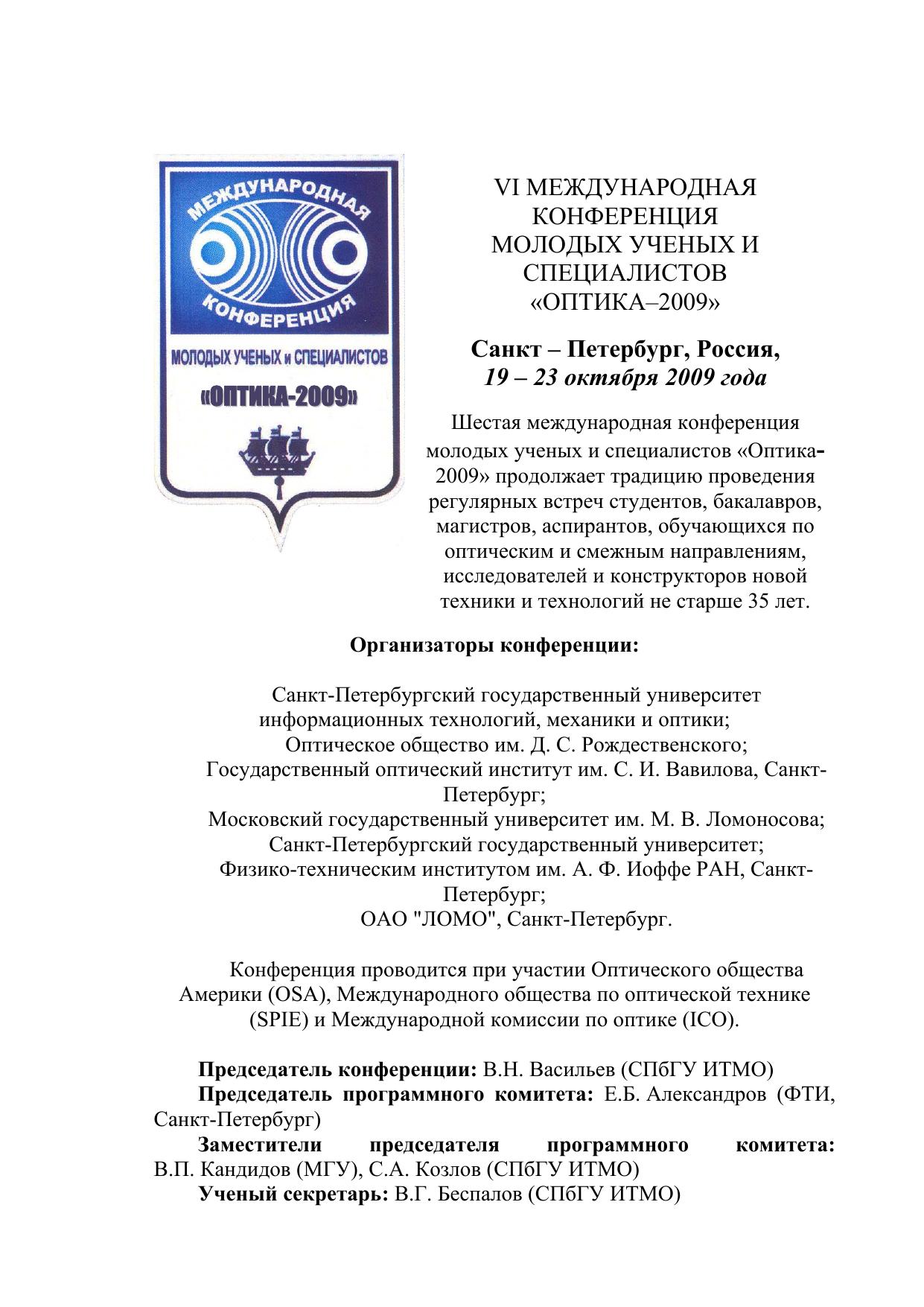 Труды шестой международной конференции молодых ученых и специалистов Оптика-2009