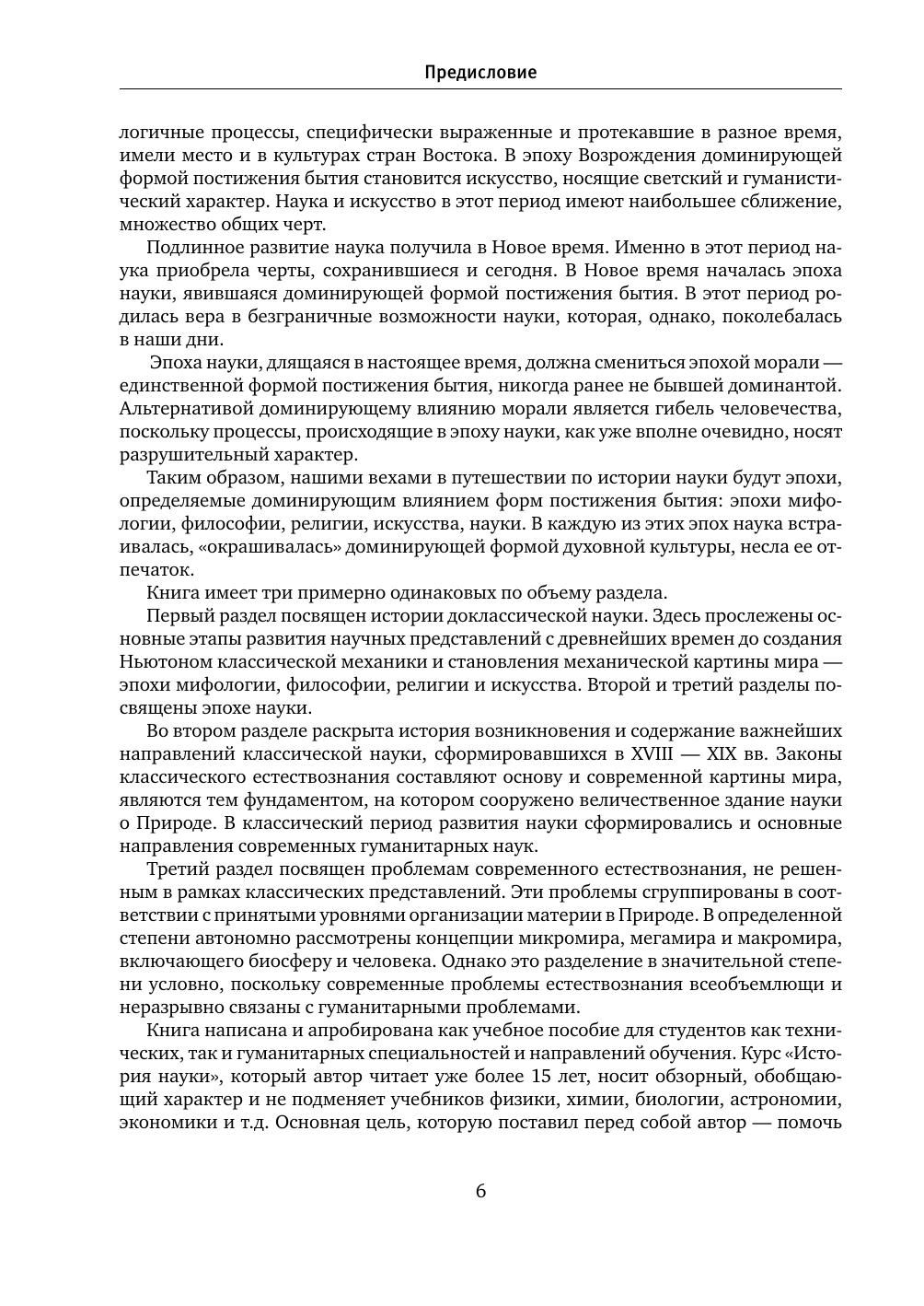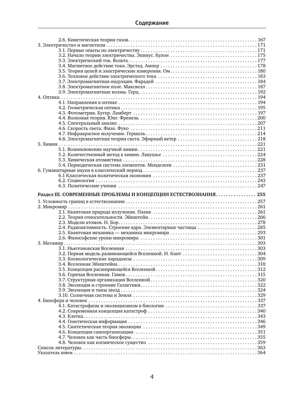 Представлена эволюция взглядов на мир и природу с древнейших времен до нашего времени. Наука и ее история рассматриваются во взаимодействии с иными формами духовной культуры — мифологией, философией, религией, искусством, моралью. Большое внимание уделено биографиям выдающихся ученых, происхождению научных терминов.