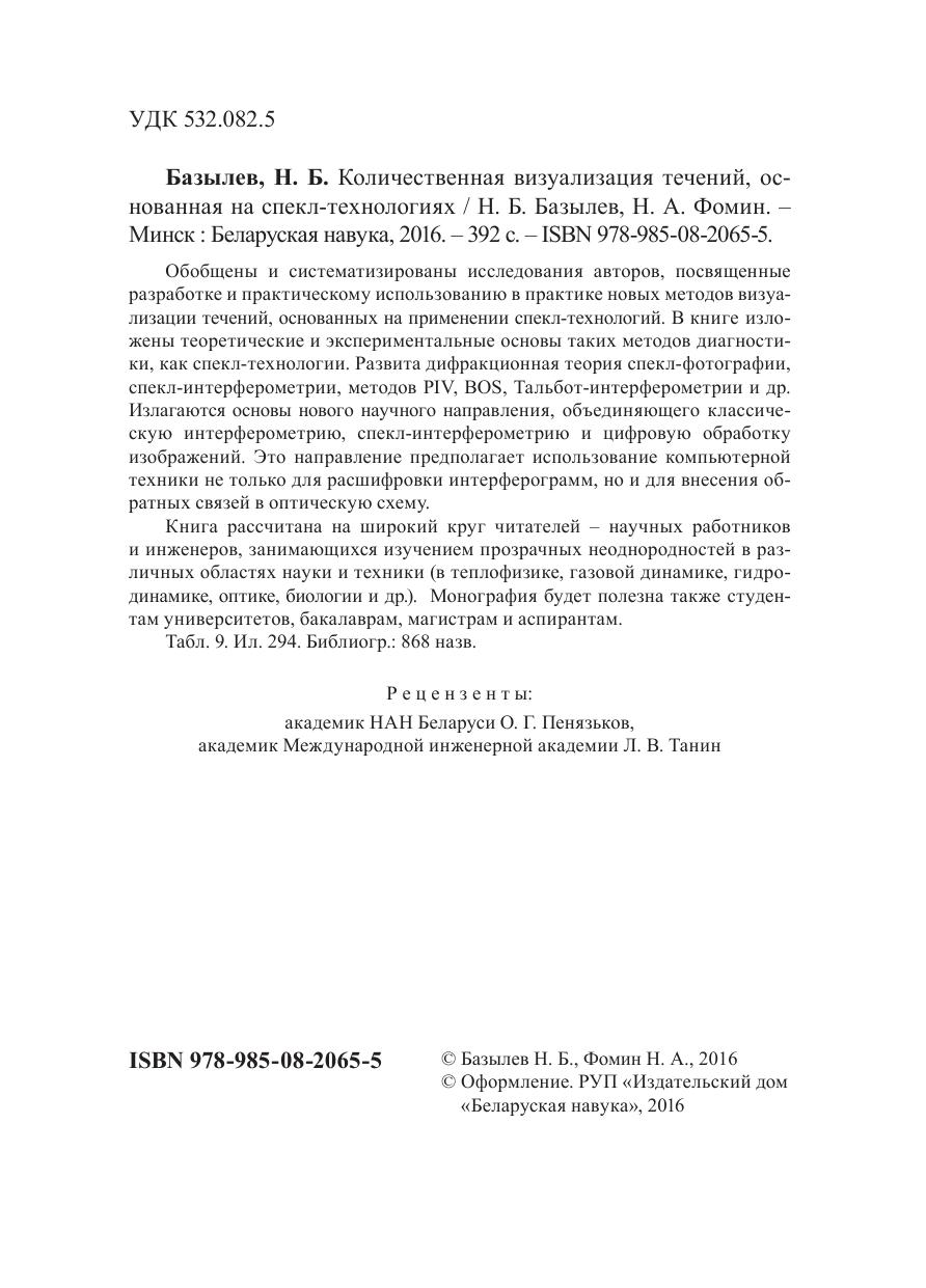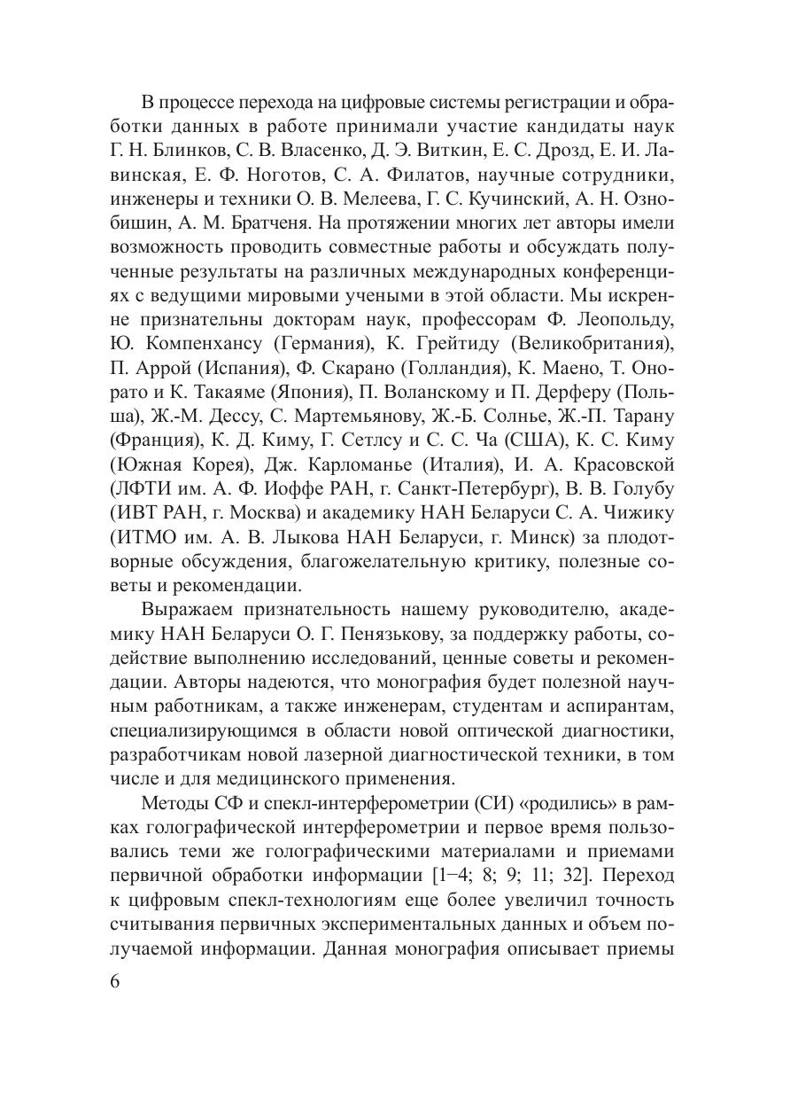 Обобщены и систематизированы исследования авторов, посвященные разработке и практическому использованию в практике новых методов визуализации течений, основанных на применении спекл-технологий. В кни ге изложены теоретические и экспериментальные основы таких методов диагностики, как спекл-технологии. Развита дифракционная теория спекл-фотографии, спекл-интерферометрии, методов PIV, BOS, Тальбот-интерферометрии и др. Излагаются основы нового научного направ ления, объединяющего классическую интерферометрию, спекл-интер феро метрию и цифровую обработку изображений. Это направление предполагает использование компьютерной техники не только для расшифровки интерферограмм, но и для внесения обратных связей в оптическую схему. Книга рассчитана на широкий круг читателей – научных работников и инженеров, занимающихся изучением прозрачных неоднородностей в различных областях науки и техники (в теплофизике, газовой динамике, гидродинамике, оптике, биологии и др.). Монография будет полезна также студентам университетов, бакалаврам, магистрам и аспирантам.