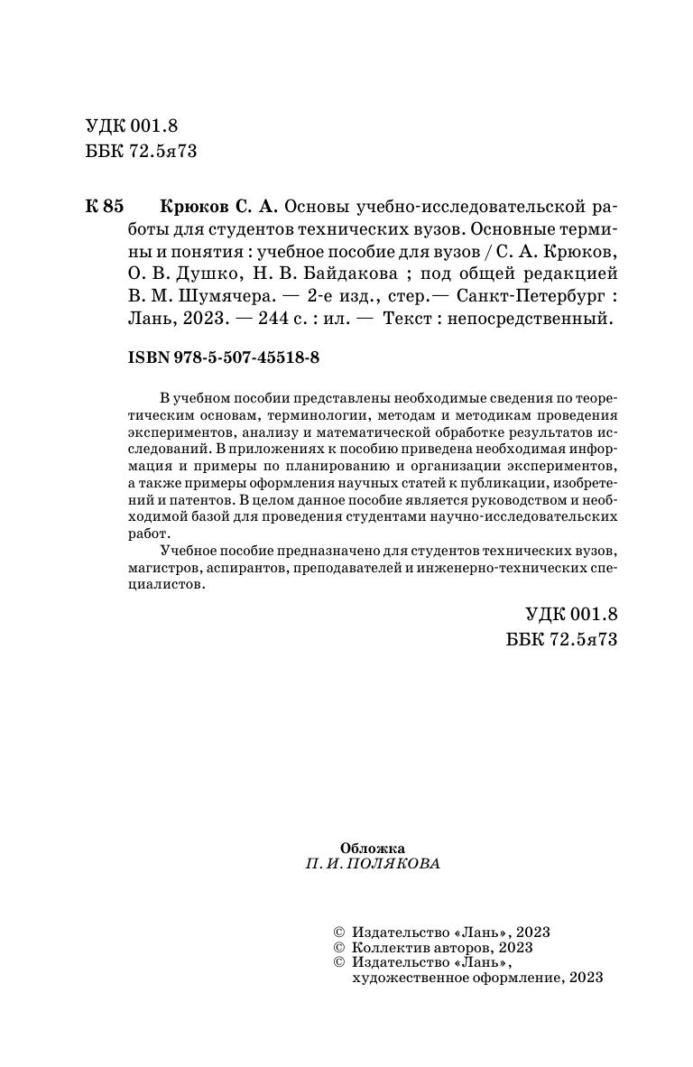 В учебном пособии представлены необходимые сведения по теоретическим основам, терминологии, методам и методикам проведения экспериментов, анализу и математической обработки результатов исследований. В приложении пособия приведена необходимая информация и примеры по планированию и организации экспериментов, а также примеры оформления научных статей к публикации, изобретений и патентов. В целом данное пособие является руководством и необходимой базой для проведения научно-исследовательских работ студентами. Учебное пособие предназначено для студентов технических вузов, магистров, аспирантов, преподавателей и инженерно-технических специалистов.
