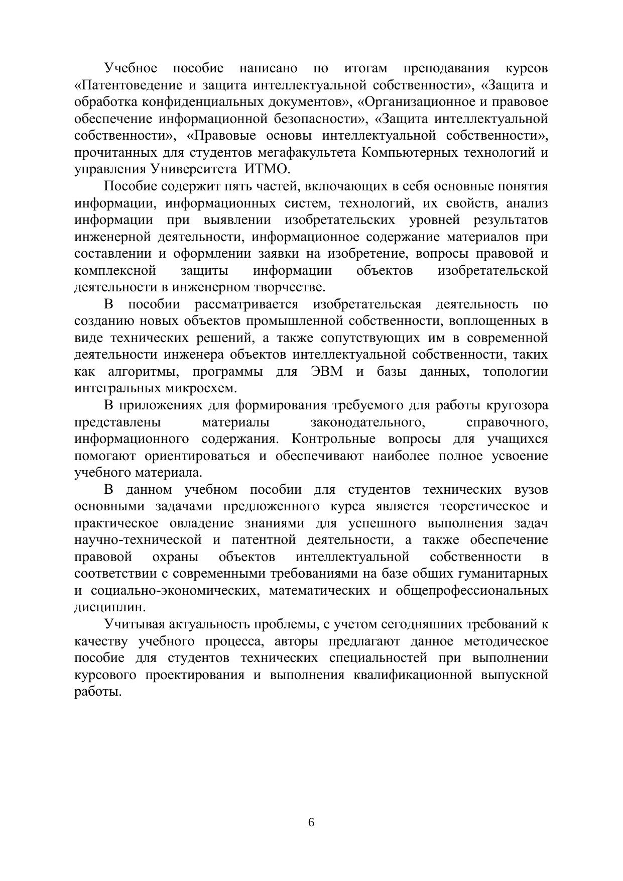 В пособии рассмотрены основные понятия информации, информационных систем, технологий, их свойств, анализ информации при выявлении изобретательских уровней результатов инженерной деятельности, информационное содержание материалов при составлении и оформлении заявки на изобретение, вопросы правовой и комплексной защиты информации объектов изобретательской деятельности в инженерном творчестве.