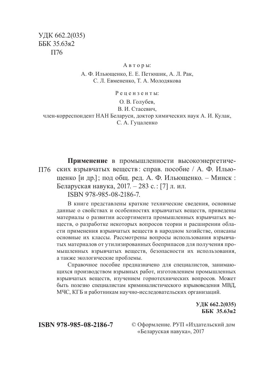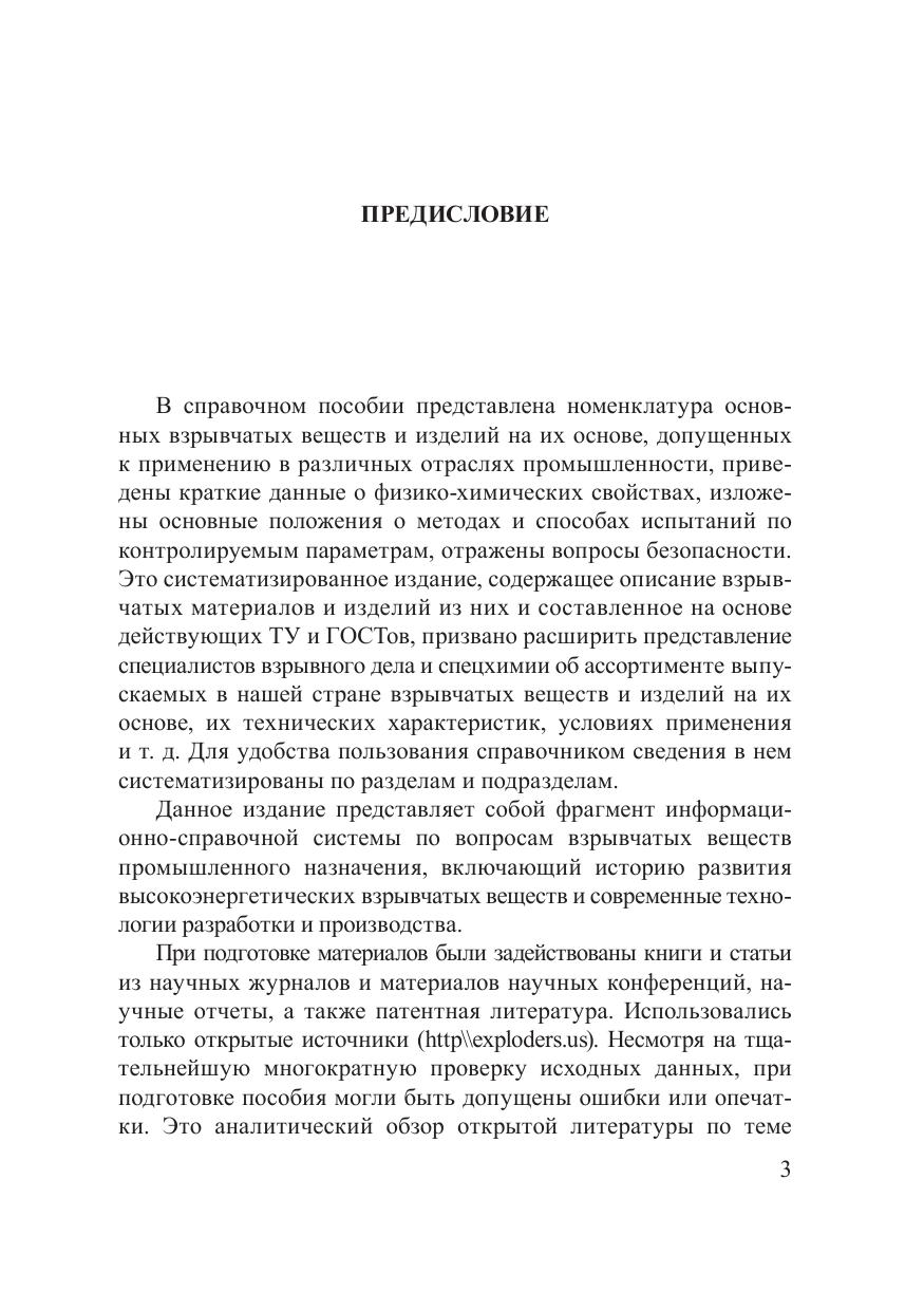 В книге представлены краткие технические сведения, основные данные о свойствах и особенностях взрывчатых веществ, приведены материалы о развитии ассортимента промышленных взрывчатых веществ, о разработке некоторых вопросов теории и расширении области применения взрывчатых веществ в народном хозяйстве, описаны основные их классы. Рассмотрены вопросы использования взрывчатых материалов от утилизированных боеприпасов для получения промышленных взрывчатых веществ, безопасности их использования, а также экологические проблемы. Справочное пособие предназначено для специалистов, занимающихся производством взрывных работ, изготовлением промышленных взрывчатых веществ, изучением горнотехнических вопросов. Может быть полезно специалистам криминалистического взрывоведения МВД, МЧС, КГБ и работникам научно-исследовательских организаций.
