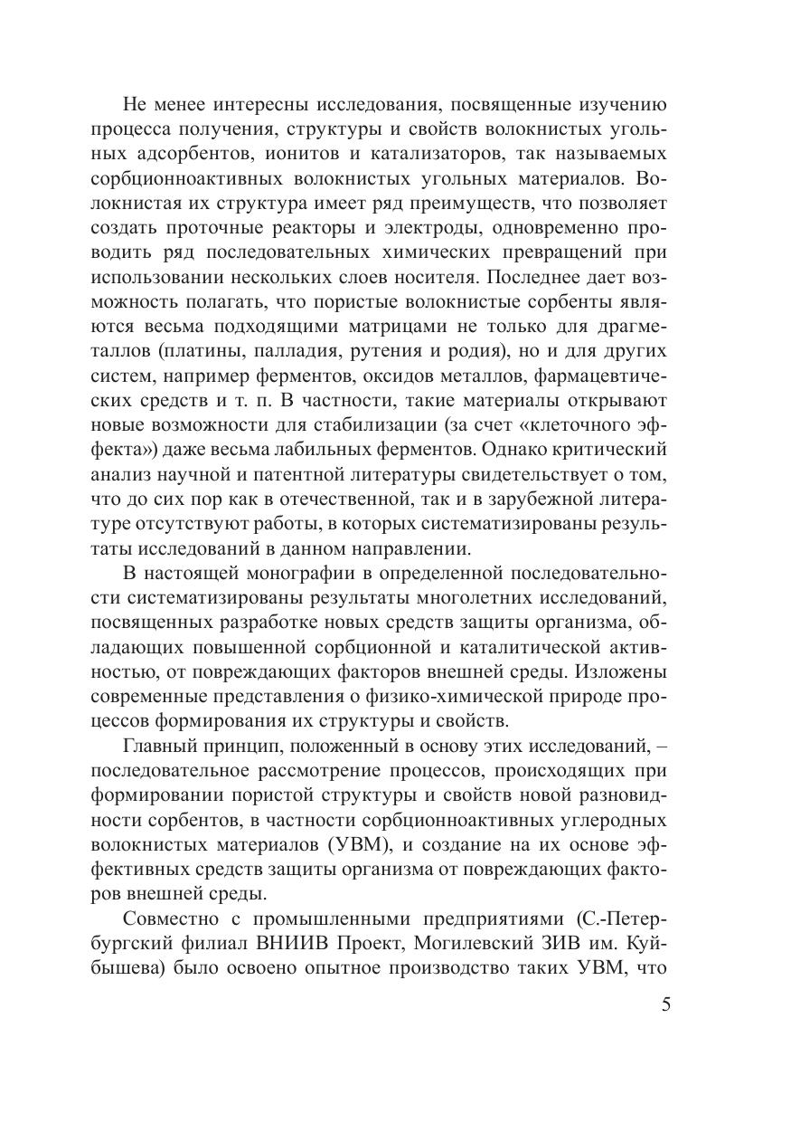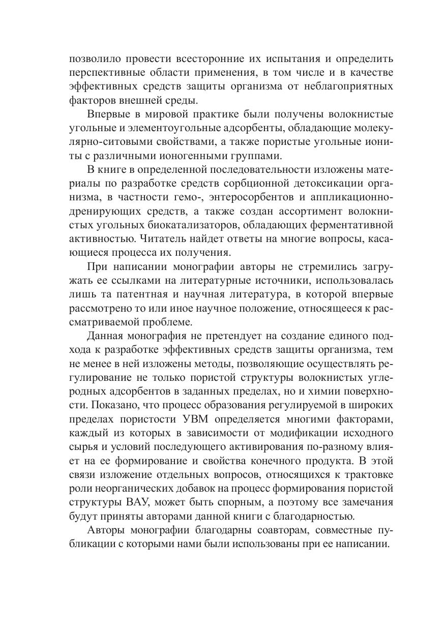 В монографии рассмотрены вопросы получения, исследования структуры и свойств, перспективных областей применения новых волокнистых углеродных адсорбентов (ВАУ), ионитов (ВУИ) и катализаторов. Изложены современные представления о физико-химической природе формирования пористой структуры углеродных и металлоуглеродных волокнистых материалов, полученных из целлюлозного волокнистого сырья. На основе таких материалов разработаны новые средства и способы сорбционной детоксикации организма, в частности гемо-, энтеросорбенты, аппликационно-дренирующие материалы. Впервые на основе волокнистых угольных и углеминеральных адсорбентов разработаны лекарственные средства «Ваулен» и «Кальфосорб», а также аппликационно-дренирующие средства (повязки, дренирующие средства и т. д.). Рассчитана на научных, инженерно-технических работников, занимающихся исследованиями в области создания адсорбентов, ионитов и катализаторов, для медицинских работников и будет полезна для студентов и аспирантов соответствующих вузов.