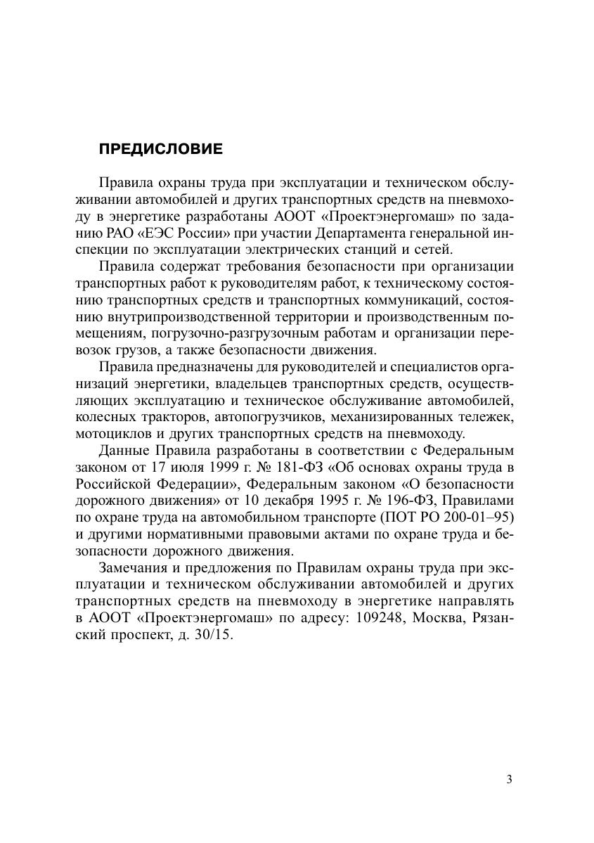Правила содержат требования безопасности при организации транспортных работ к руководителям работ, к техническому состоянию транспортных средств и транспортных коммуникаций, состоянию внутрипроизводственной территории и производственным помещениям, погрузочно-разгрузочным работам и организации перевозок грузов, а также безопасности движения. Правила предназначены для руководителей и специалистов организаций энергетики, владельцев транспортных средств, осуществляющих эксплуатацию и техническое обслуживание автомобилей, колесных тракторов, автопогрузчиков, механизированных тележек, мотоциклов и других транспортных средств на пневмоходу.