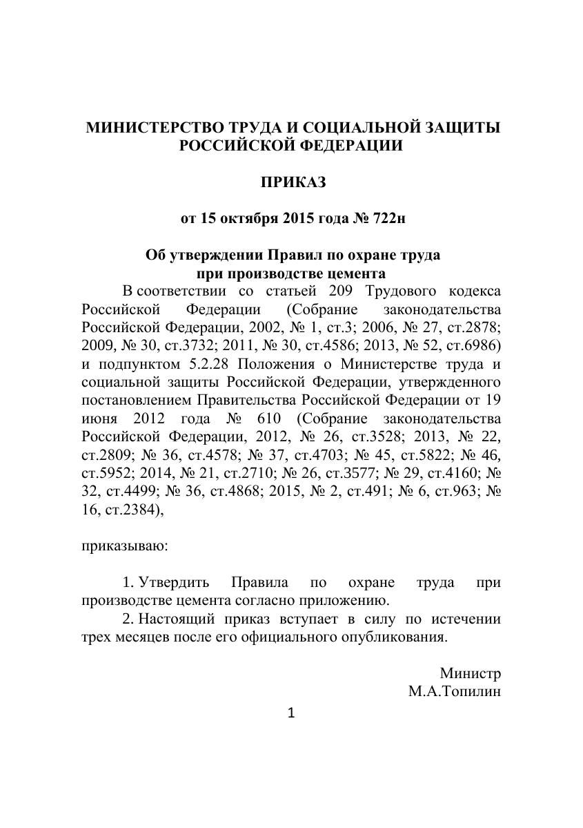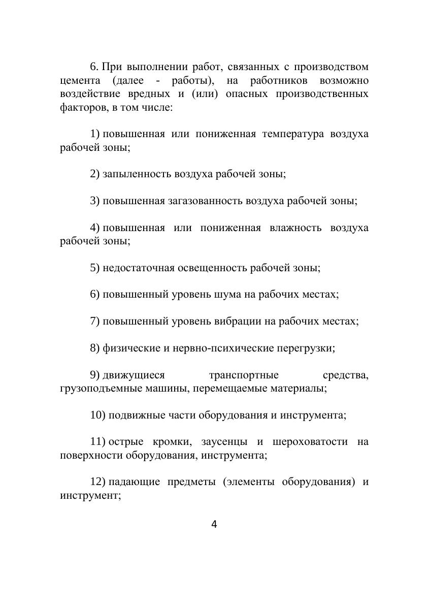 Правила по охране труда при производстве цемента